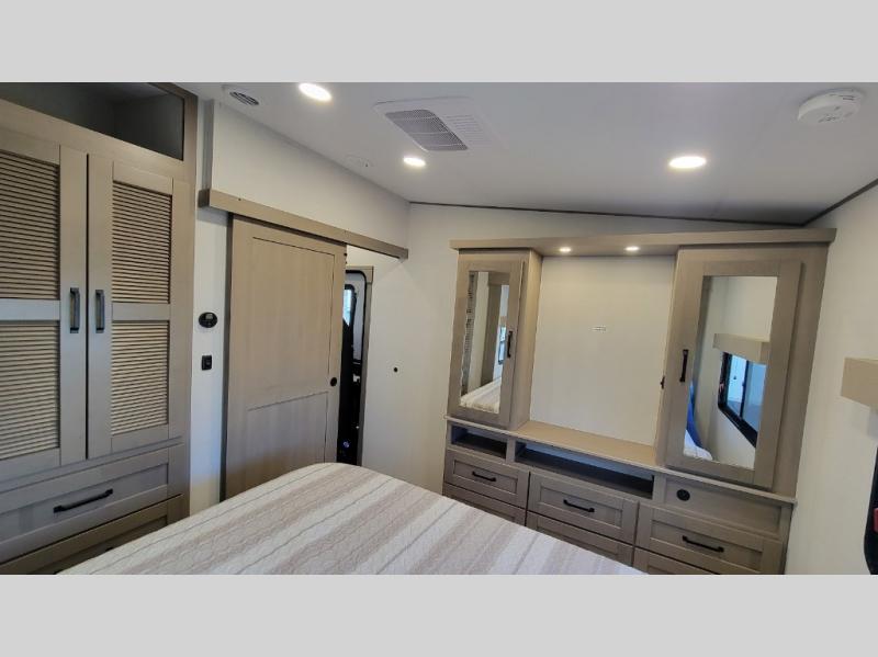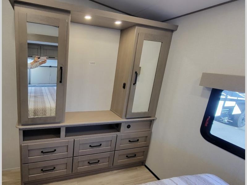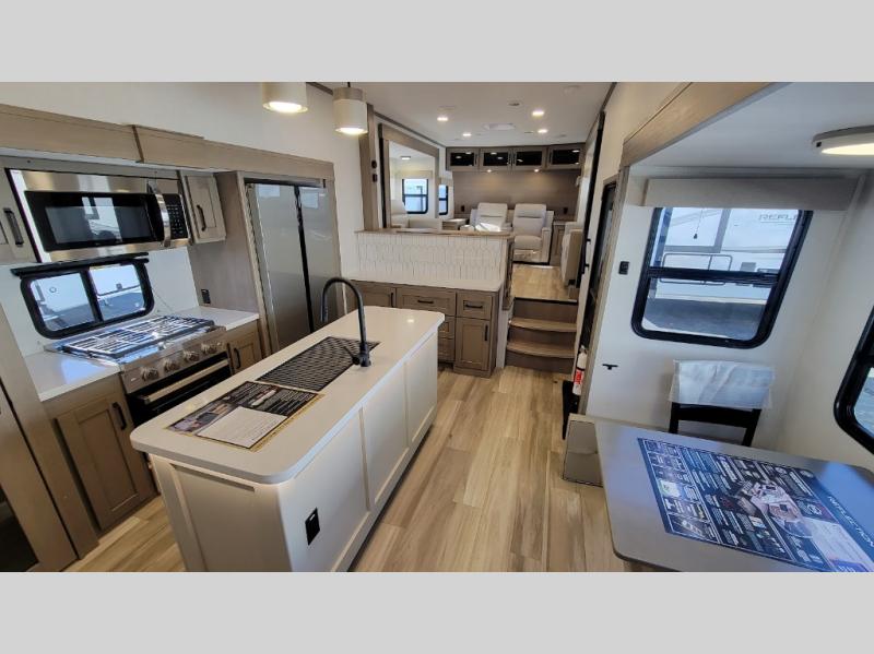 Each Reflection fifth wheel and travel trailer by Grand Design is packed with luxury features for an overall better camping experience! The MORryde 3000CRE suspension provides smooth towing to your destination and the durable construction materials mean you can enjoy your RV for years to come. These units include the Arctic 4-Seasons Protection Package that will extend your camping season thanks to the extreme temperature testing and maximum heating power. The interior of these travel trailers and fifth wheels are designed to make you feel at home with residential cabinetry, solid surface countertops, roller shades, a spacious shower with a glass door, residential bedrooms, and the list goes on! Choose a Reflection today and start a new adventure tomorrow!