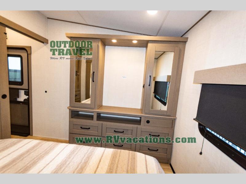 Each Reflection fifth wheel and travel trailer by Grand Design is packed with luxury features for an overall better camping experience! The MORryde 3000CRE suspension provides smooth towing to your destination and the durable construction materials mean you can enjoy your RV for years to come. These units include the Arctic 4-Seasons Protection Package that will extend your camping season thanks to the extreme temperature testing and maximum heating power. The interior of these travel trailers and fifth wheels are designed to make you feel at home with residential cabinetry, solid surface countertops, roller shades, a spacious shower with a glass door, residential bedrooms, and the list goes on! Choose a Reflection today and start a new adventure tomorrow!