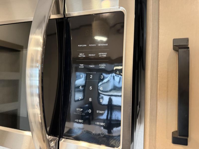 - Residential Features: Includes a large 16 cu. ft. refrigerator, a high-efficiency range, and solid surface countertops for a chef-inspired experience.