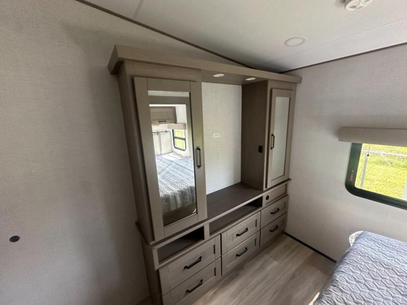 With any Reflection fifth wheel by Grand Design, you will have a solar panel for off-grid camping and a 60 amp charge controller and inverter prep, a Universal All-In-One docking station, unobstructed pass-through storage, and Goodyear Endurance tires. Each is constructed of gel coat exterior sidewalls, residential 5" truss rafters, walk-on roof decking, a fiberglass and radiant foil roof and front cap insulation plus laminated aluminum framed side walls, roof and end walls in slide rooms. Head inside to enjoy residential hardwood cabinet doors, premium Congoleum flooring, a spacious shower with a glass door, and many more comforts!