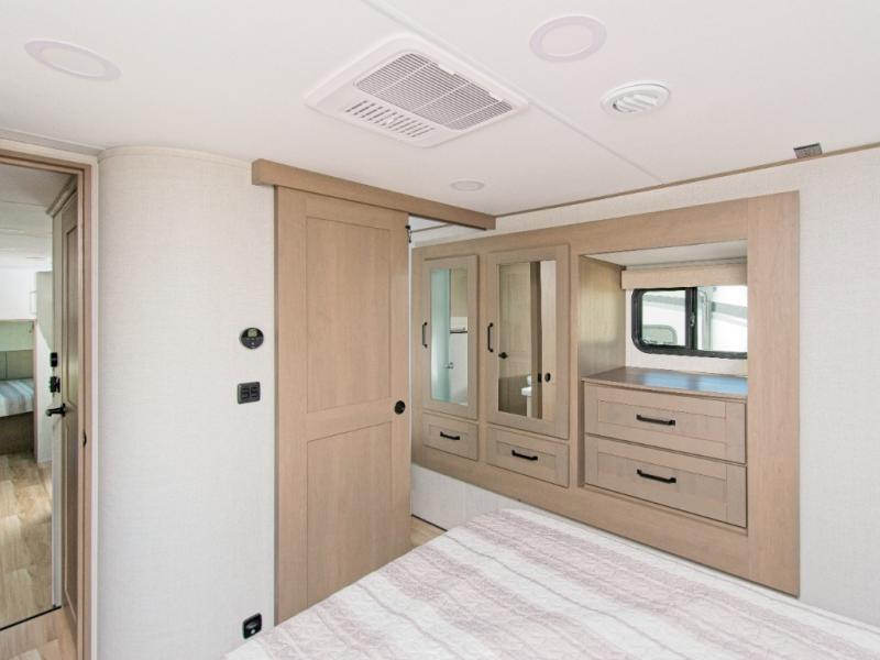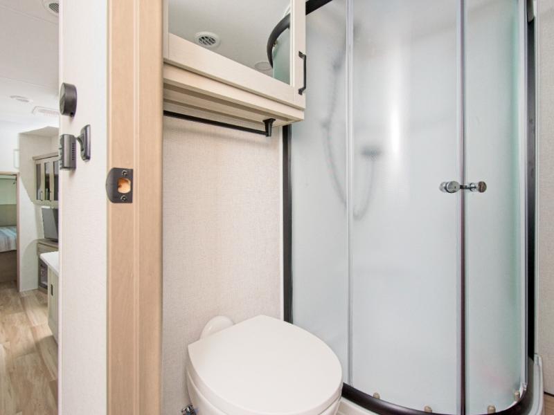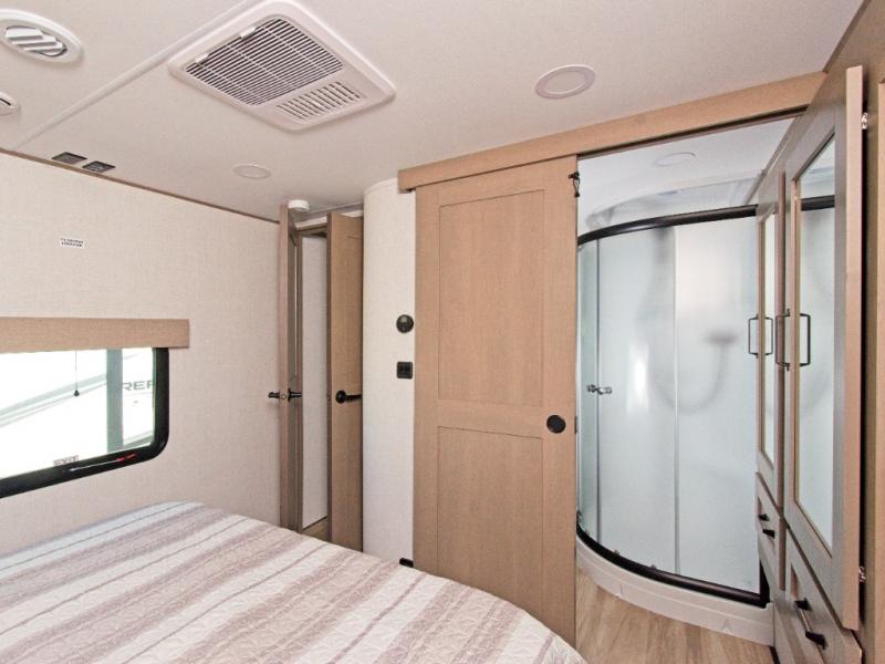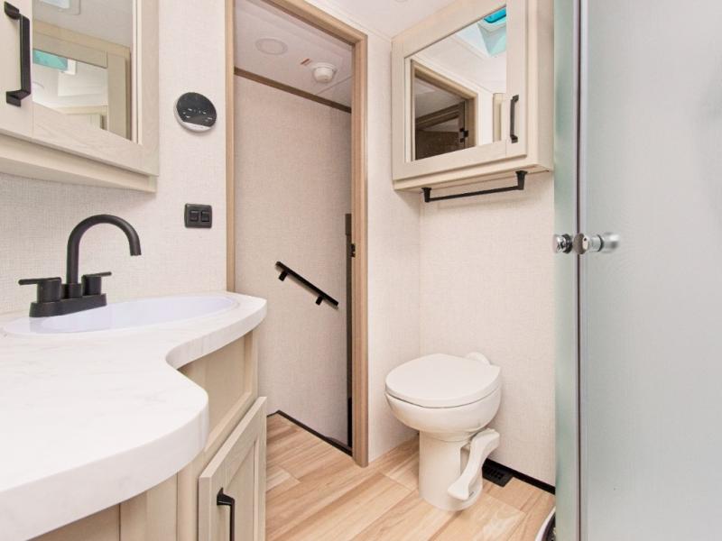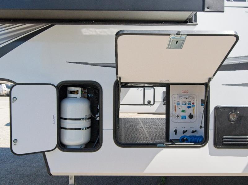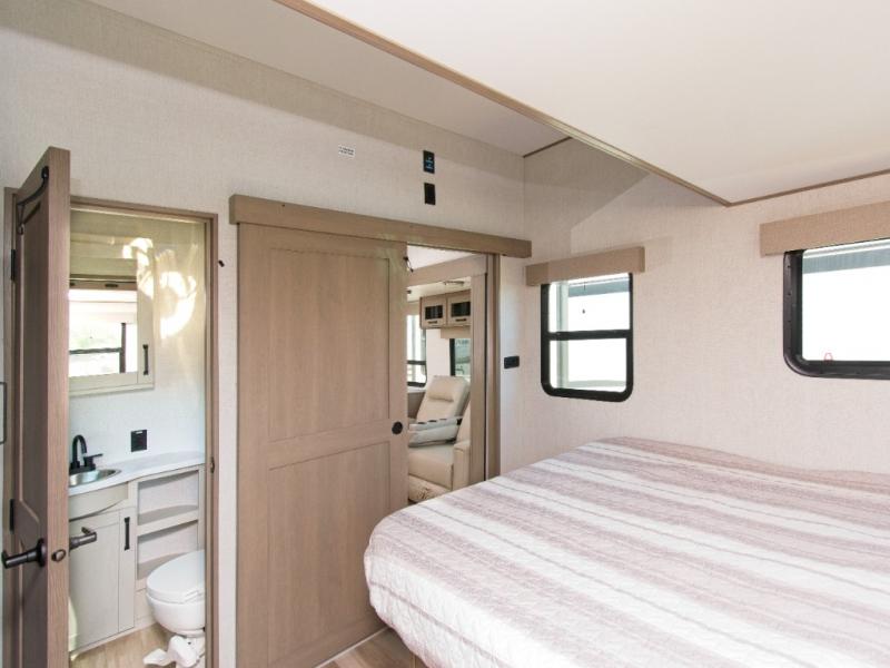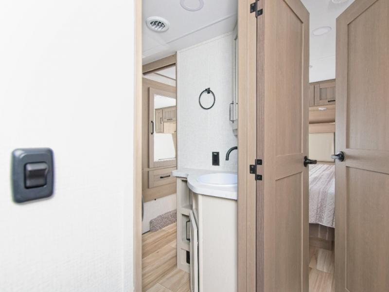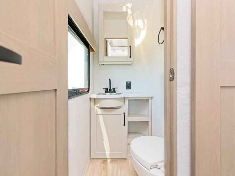 Enhanced Towing and Safety Features: The Reflection 150 Series is designed for a broader range of half-ton trucks, offering more payload capacity and eliminating the need for a slider hitch thanks to its 90-degree turning radius. The Ultimate Power Package includes a "One-Touch" automatic leveling system, a detachable power cord with LED light, motion sensor pass-through lighting, and entry lighting. The Tire Linc TPMS ensures you stay safe on the road.