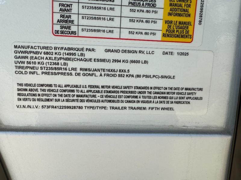New 2025 Grand Design Reflection 362TBS Fifth Wheel