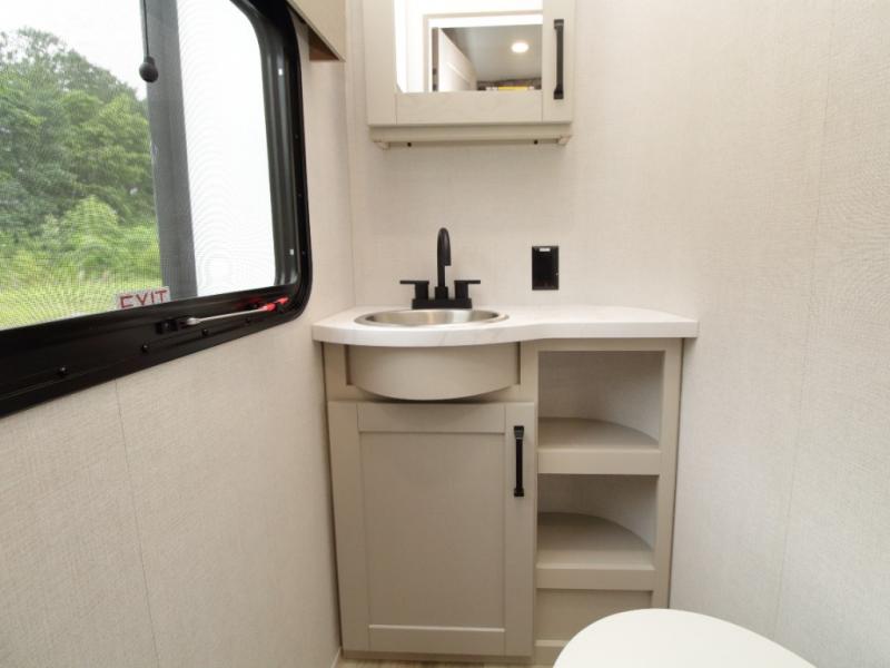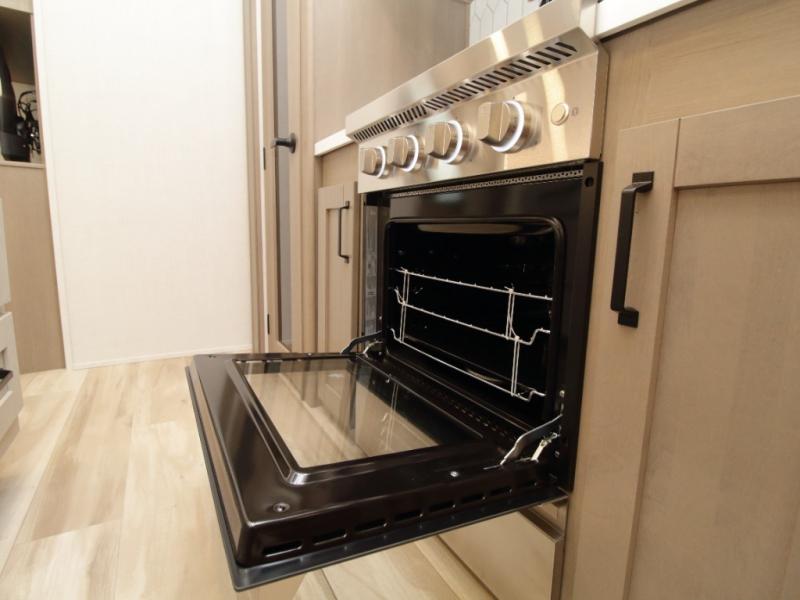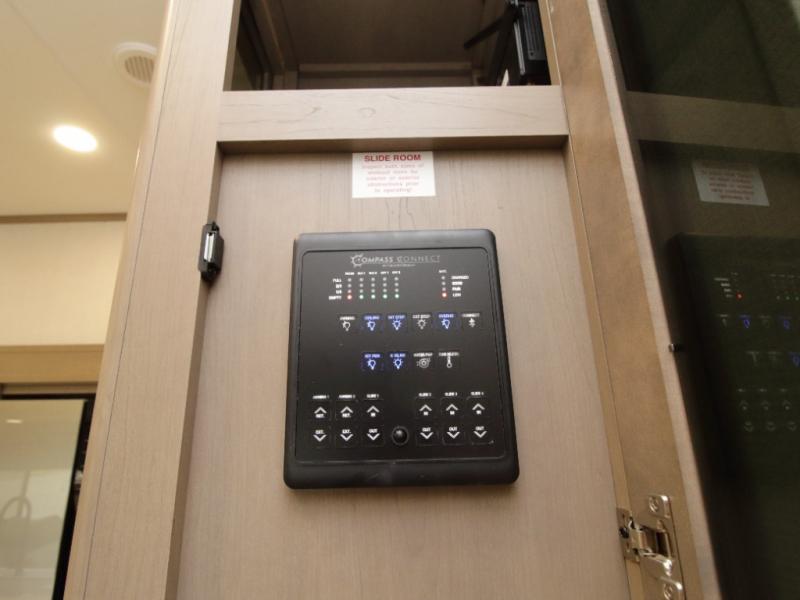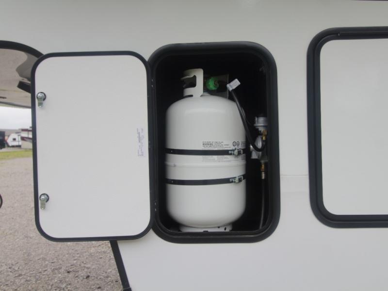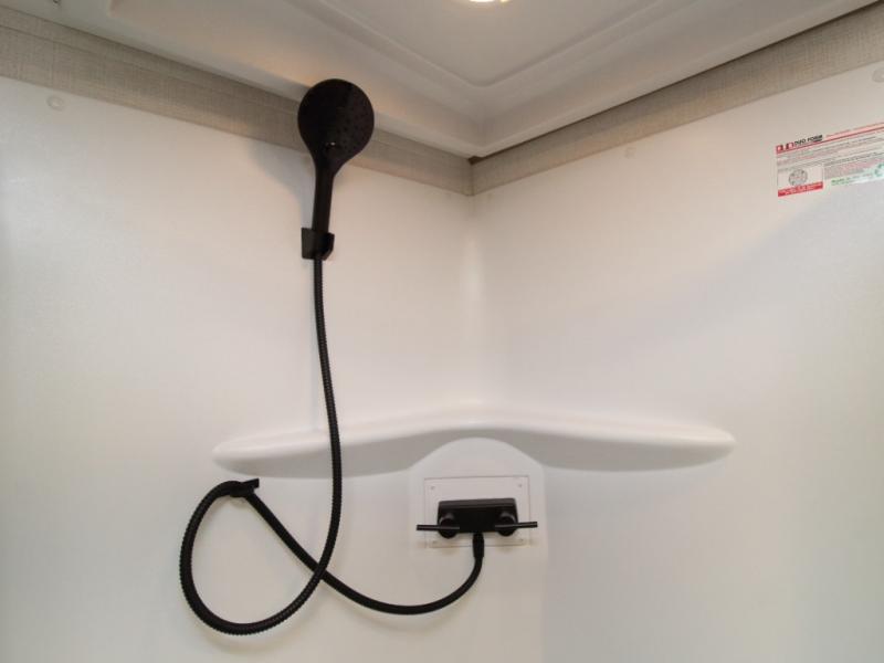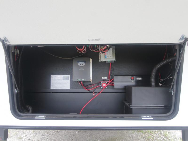 Inside, you’ll find residential-quality finishes, including hardwood cabinet doors, premium Congoleum flooring, and a spacious glass-door shower. Outside, the solar panel with 60 amp charge controller supports off-grid adventures, while Goodyear Endurance tires and laminated aluminum-framed construction offer peace of mind on the road.