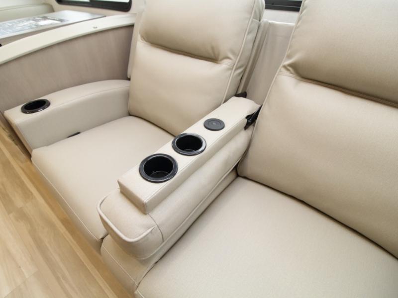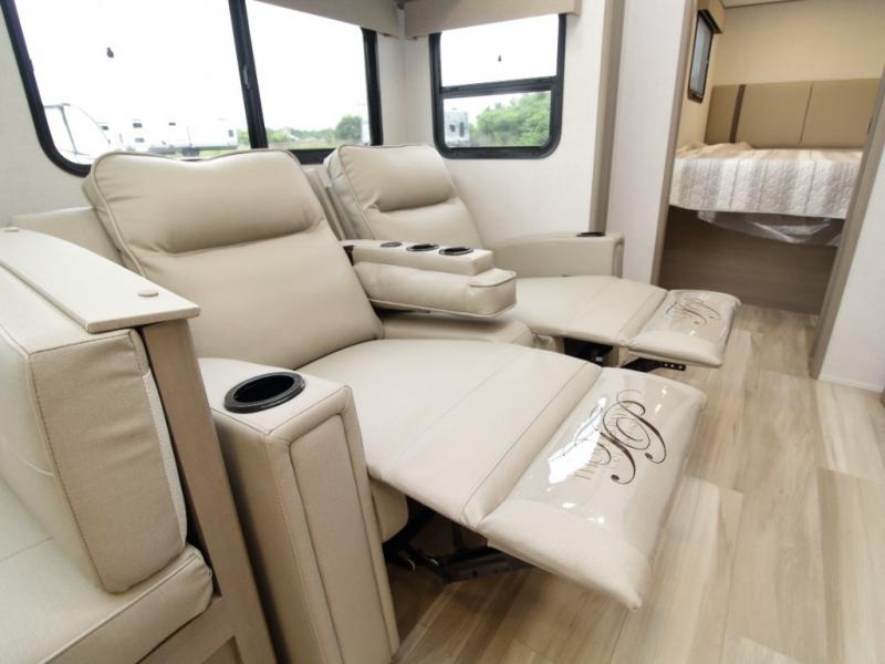 Entertainment Ready – Theater seating, booth dinette, 40" TV, fireplace, and optional tri-fold sofa or swivel dinette.