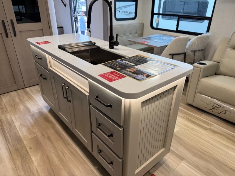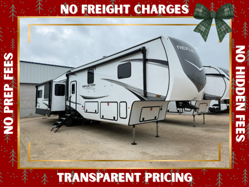 With any Reflection fifth wheel by Grand Design, you will have a solar panel for off-grid camping and a 60 amp charge controller and inverter prep, a Universal All-In-One docking station, unobstructed pass-through storage, and Goodyear Endurance tires. Each is constructed of gel coat exterior sidewalls, residential 5" truss rafters, walk-on roof decking, a fiberglass and radiant foil roof and front cap insulation plus laminated aluminum framed side walls, roof and end walls in slide rooms. Head inside to enjoy residential hardwood cabinet doors, premium Congoleum flooring, a spacious shower with a glass door, and many more comforts!