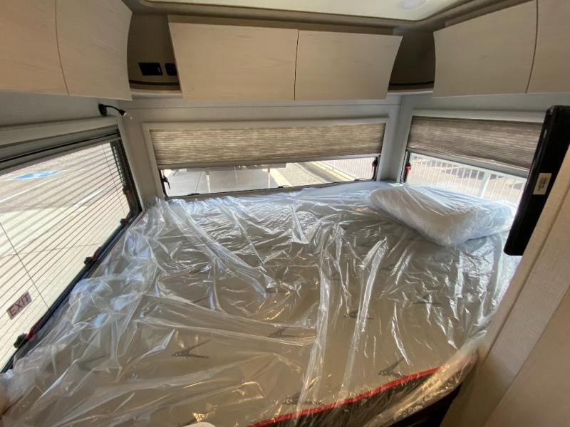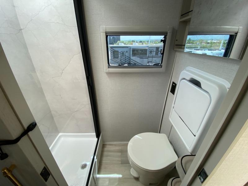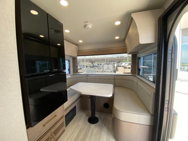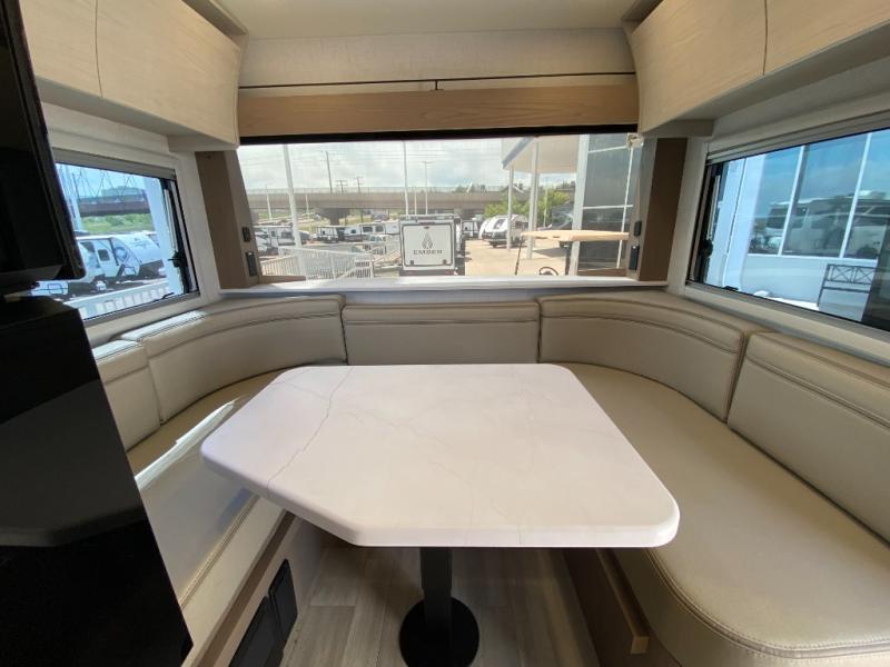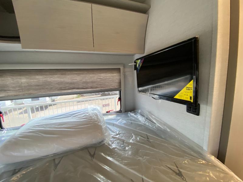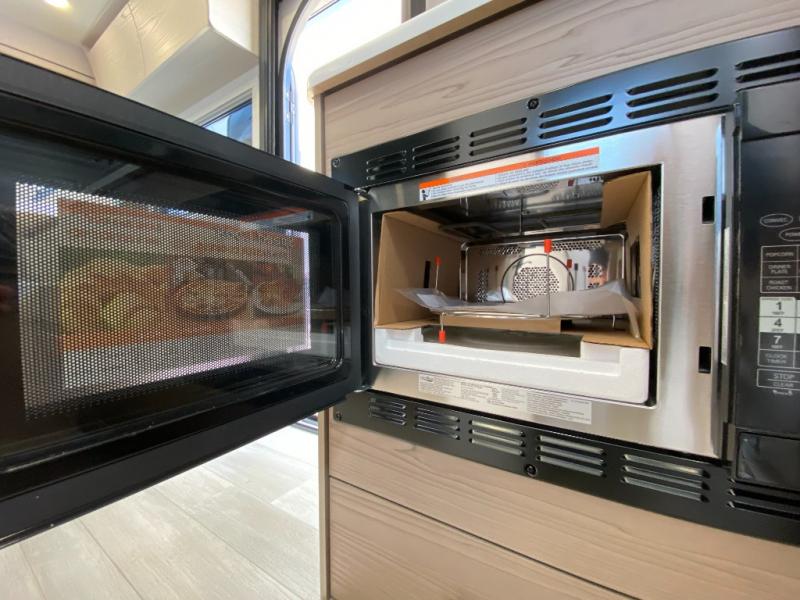 Trips to the lake are made complete in this cozy travel trailer for four. Once you arrive at the campground, you can unload the exterior storage, then start lunch on the induction cooktop and convection microwave. There is a front U-shaped sleeper dinette that will provide dining space and additional sleeping space for guests. This unit includes a private full bath with a shower, toilet, and flip-up bath sink plus some convenient storage for your necessities. You're sure to enjoy sleeping on the rear queen bed that includes wraparound overhead storage for your things!