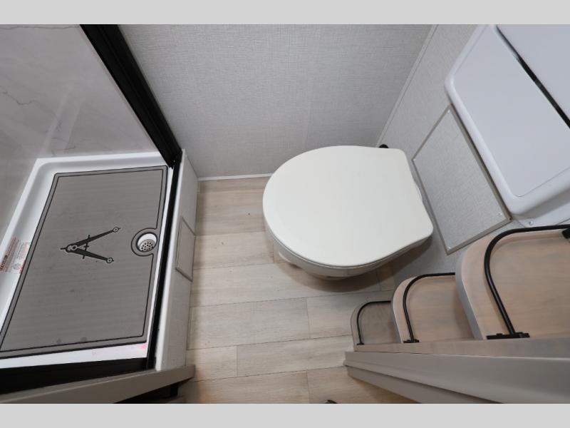 Trips to the lake are made complete in this cozy travel trailer for four. Once you arrive at the campground, you can unload the exterior storage, then start lunch on the induction cooktop and convection microwave. There is a front U-shaped sleeper dinette that will provide dining space and additional sleeping space for guests. This unit includes a private full bath with a shower, toilet, and flip-up bath sink plus some convenient storage for your necessities. You're sure to enjoy sleeping on the rear queen bed that includes wraparound overhead storage for your things!