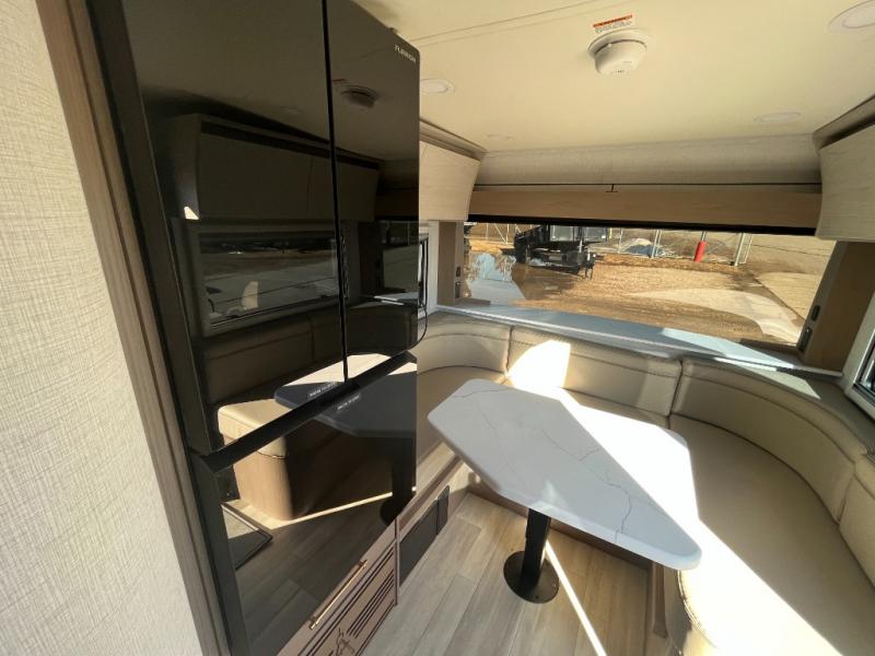 With any Serenova travel trailer by Grand Design, you will enjoy a smooth tow and at-home comforts wherever you decide to roam. There is a MORryde independent suspension plus MORryde shock, Goodyear Endurance tires, and Dexter tow assist with an anti-lock braking system and sway control for optimal handling. To help extend your camping season, there is an enclosed underbelly, a dedicated heat source with Thermafoil, heated dump valves plus thermostatically controlled 12V heating pads. Inside, you'll love the look of the imported Italian cabinetry, and there is a Klipsch whole home Bluetooth speaker so you can listen to your favorite tunes at the campground!