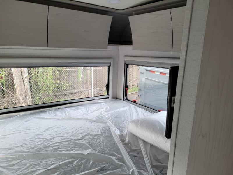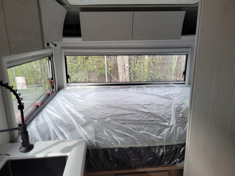 Trips to the lake are made complete in this cozy travel trailer for four. Once you arrive at the campground, you can unload the exterior storage, then start lunch on the induction cooktop and convection microwave. There is a front U-shaped sleeper dinette that will provide dining space and additional sleeping space for guests. This unit includes a private full bath with a shower, toilet, and flip-up bath sink plus some convenient storage for your necessities. You're sure to enjoy sleeping on the rear queen bed that includes wraparound overhead storage for your things!