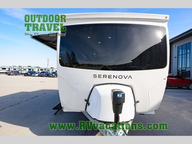 With any Serenova travel trailer by Grand Design, you will enjoy a smooth tow and at-home comforts wherever you decide to roam. There is a MORryde independent suspension plus MORryde shock, Goodyear Endurance tires, and Dexter tow assist with an anti-lock braking system and sway control for optimal handling. To help extend your camping season, there is an enclosed underbelly, a dedicated heat source with Thermafoil, heated dump valves plus thermostatically controlled 12V heating pads. Inside, you'll love the look of the imported Italian cabinetry, and there is a Klipsch whole home Bluetooth speaker so you can listen to your favorite tunes at the campground!