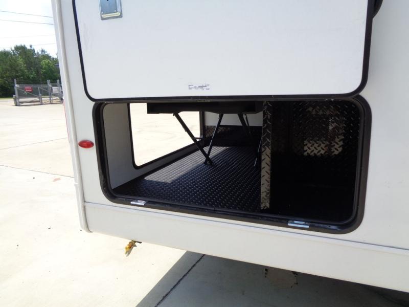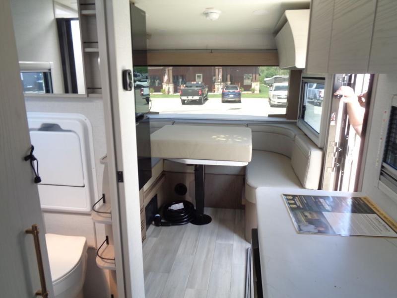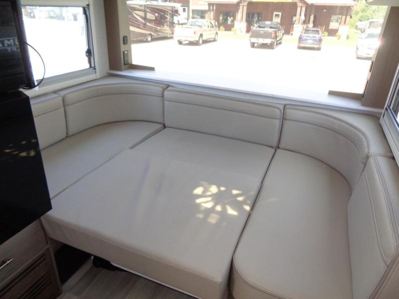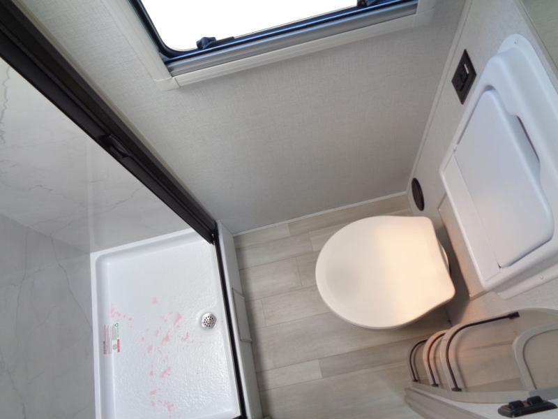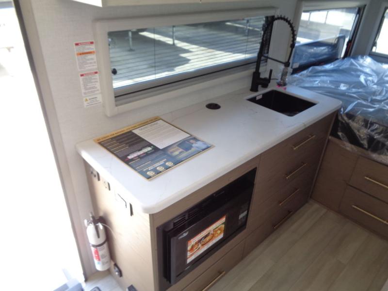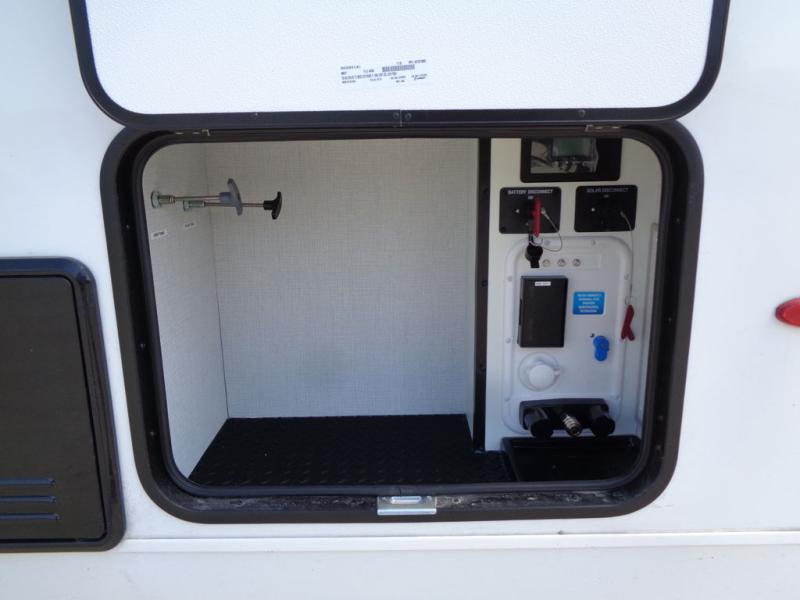 Trips to the lake are made complete in this cozy travel trailer for four. Once you arrive at the campground, you can unload the exterior storage, then start lunch on the induction cooktop and convection microwave. There is a front U-shaped sleeper dinette that will provide dining space and additional sleeping space for guests. This unit includes a private full bath with a shower, toilet, and flip-up bath sink plus some convenient storage for your necessities. You're sure to enjoy sleeping on the rear queen bed that includes wraparound overhead storage for your things!