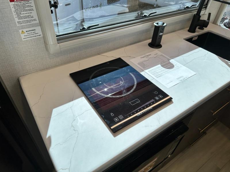 Trips to the lake are made complete in this cozy travel trailer for four. Once you arrive at the campground, you can unload the exterior storage, then start lunch on the induction cooktop and convection microwave. There is a front U-shaped sleeper dinette that will provide dining space and additional sleeping space for guests. This unit includes a private full bath with a shower, toilet, and flip-up bath sink plus some convenient storage for your necessities. You're sure to enjoy sleeping on the rear queen bed that includes wraparound overhead storage for your things!