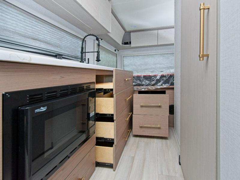 Grand Design’s Serenova travel trailers combine smooth towing with premium features for a worry-free experience. With MORryde independent suspension, shock absorbers, Goodyear Endurance tires, and Dexter tow assist with anti-lock brakes and sway control, you’ll enjoy optimal handling wherever the road takes you. Extended camping is possible thanks to the enclosed underbelly, dedicated heat source with Thermafoil, heated dump valves, and thermostatically controlled 12V heating pads. Inside, the imported Italian cabinetry and Klipsch whole-home Bluetooth speakers bring style and entertainment to your home away from home.