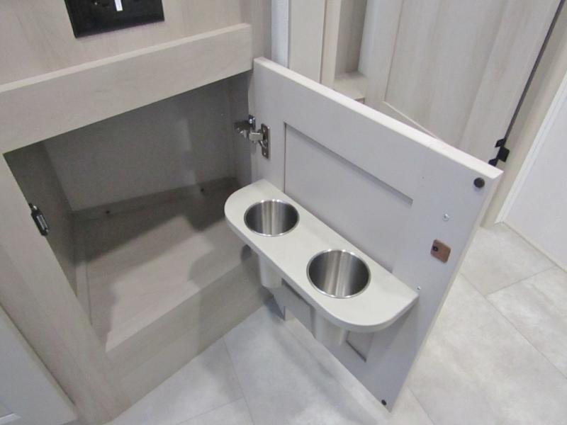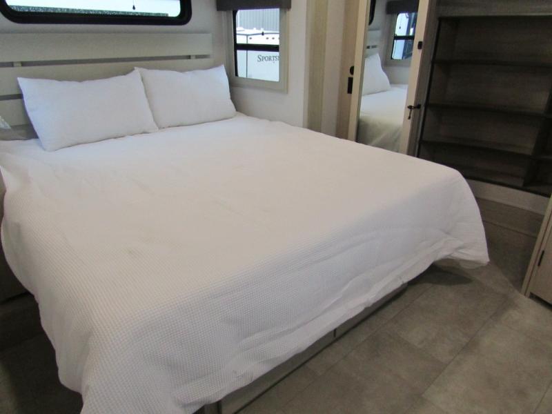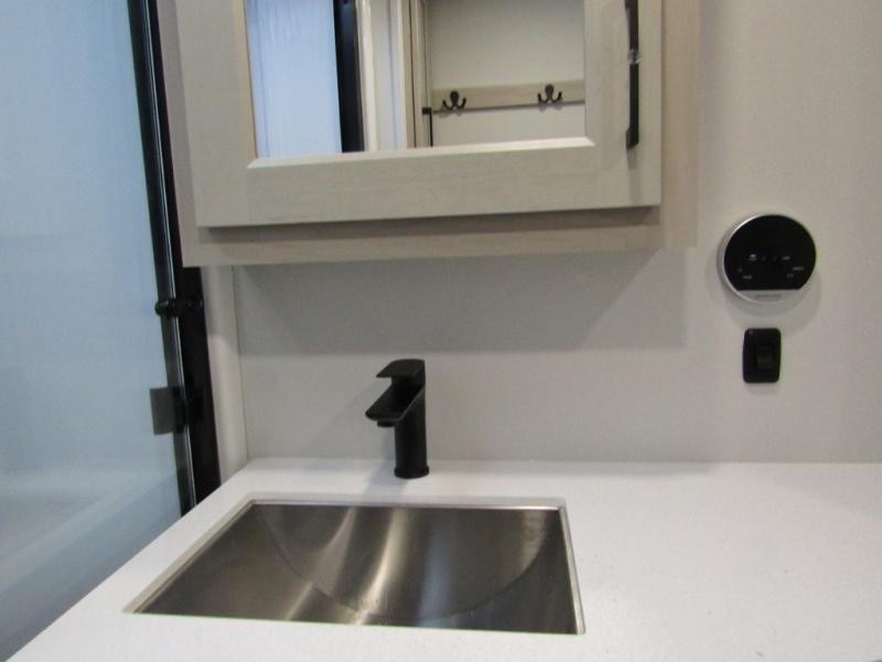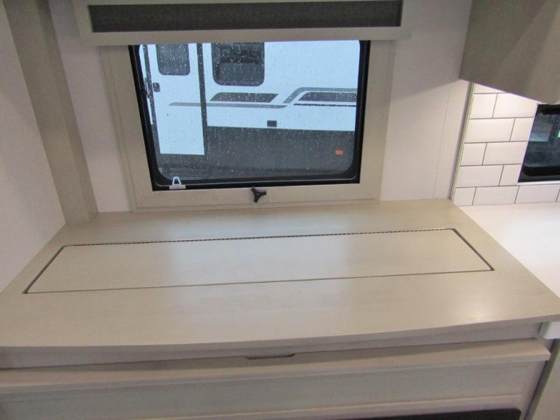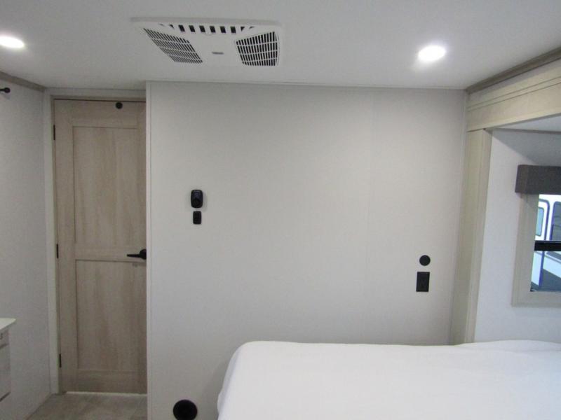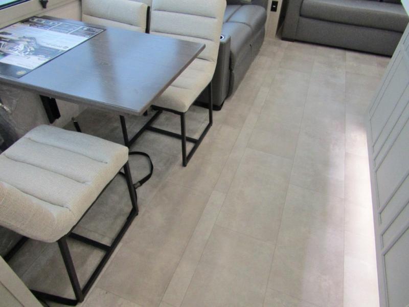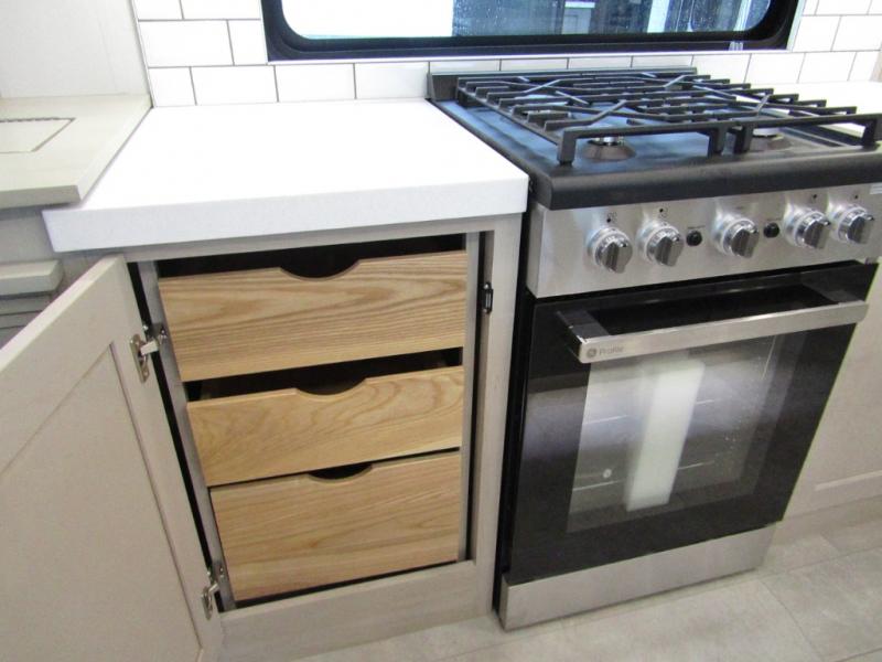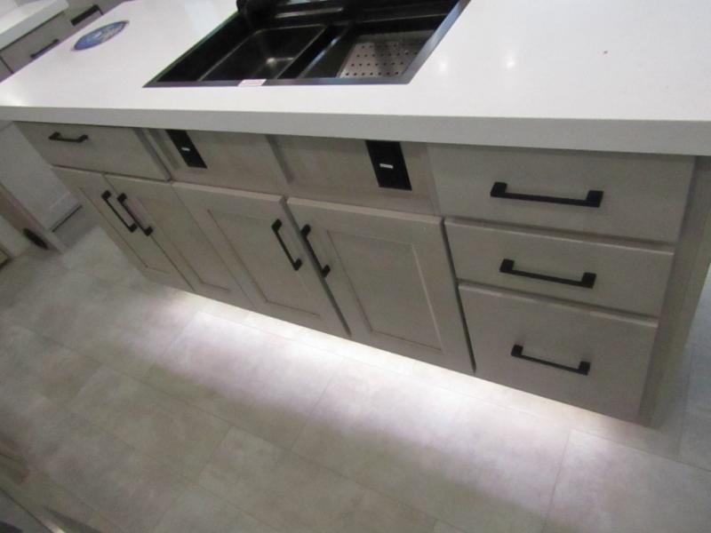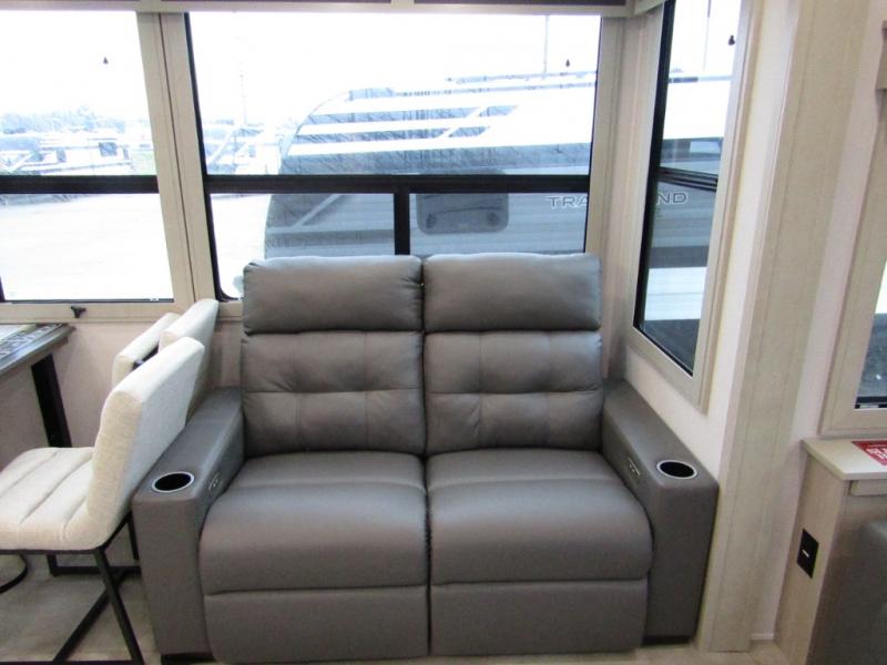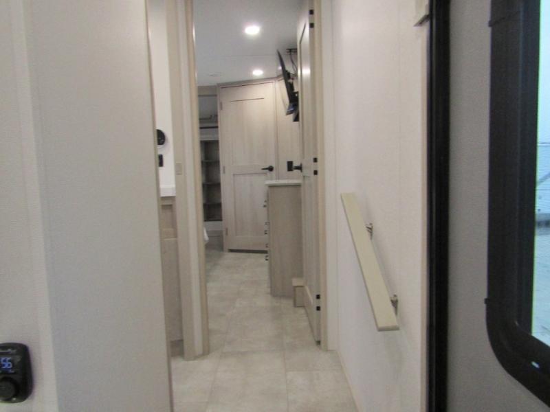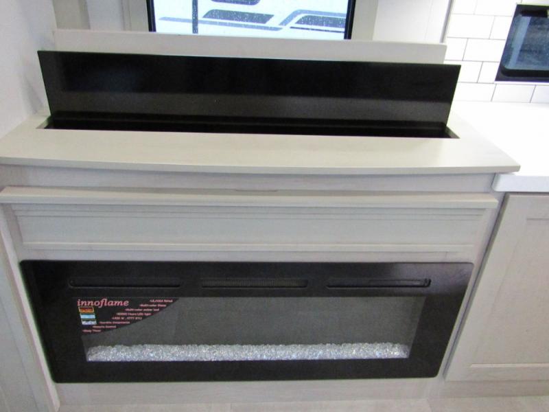 Traveling for long periods at a time is made easy with this gourmet kitchen that can feed your entire group a holiday meal! The professional-grade stainless steel cooktop with a built-in oven, microwave, 12V 20 cu. ft. refrigerator, and a kitchen island offers everything you will need to enjoy cooking for your family and guests. There is abundant storage throughout multiple overhead cabinets, a kitchen pantry and hutch, a bath linen cabinet for your towels, and in the front master bedroom which features a large closet. In the bedroom there is also a queen bed slide for added space to sleep comfortable at night, or you may choose an optional king bed if you enjoy more space. You will also find a closet with washer/dryer prep, large wardrobe, plus a slide top dresser. Two nice awnings will provide outdoor living space keeping you protected from the sun and rain, and you can add an optional pull-out kitchen to enjoy convenient cooking outdoors as well.
