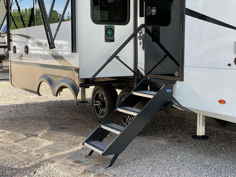 Each Solitude fifth wheel by Grand Design features a 101" wide-body construction, heavy duty 8,000 lb. axles, frameless tinted windows, and high-gloss gel coat sidewalls. You can camp year around thanks to the Weather-Tek Package that includes a 35K BTU high-capacity furnace, an all-in-one enclosed and heated utility center, and a fully enclosed underbelly with heated tanks and storage. Inside, you'll love the premium roller shades, hardwood cabinet doors, solid surface countertops, plus residential finishes throughout to make you truly feel at home. Each model also includes a MORryde CRE3000 suspension system, self adjusting brakes, and a MORryde pin box that will provide smooth towing from home to campground. Affordable luxury is possible with the Solitude fifth wheels; choose yours today!