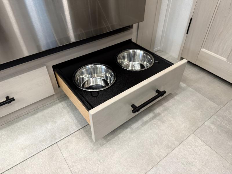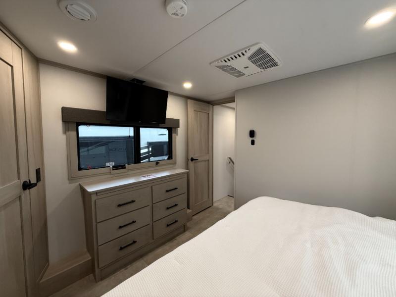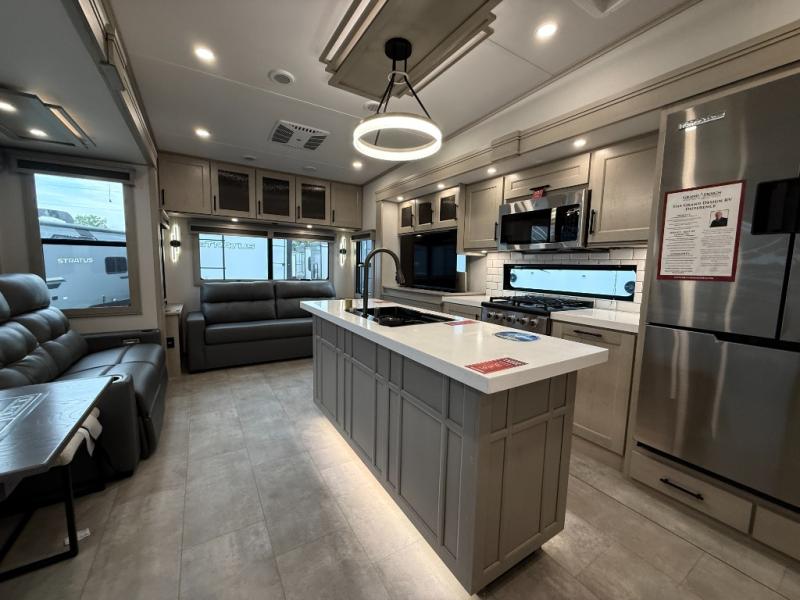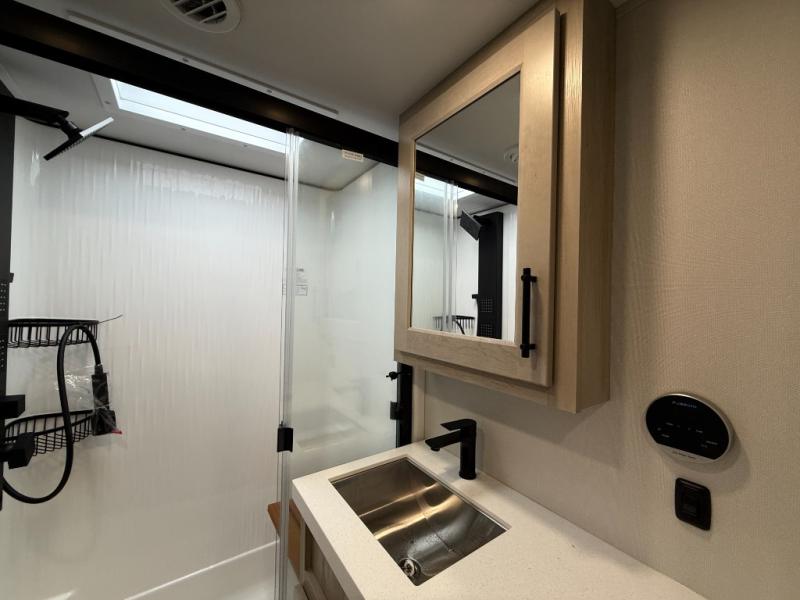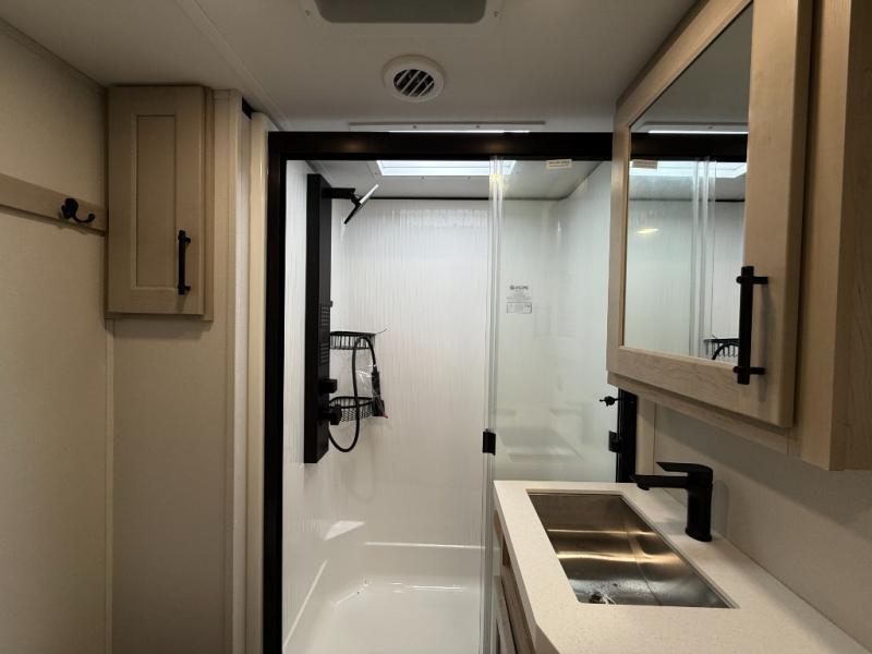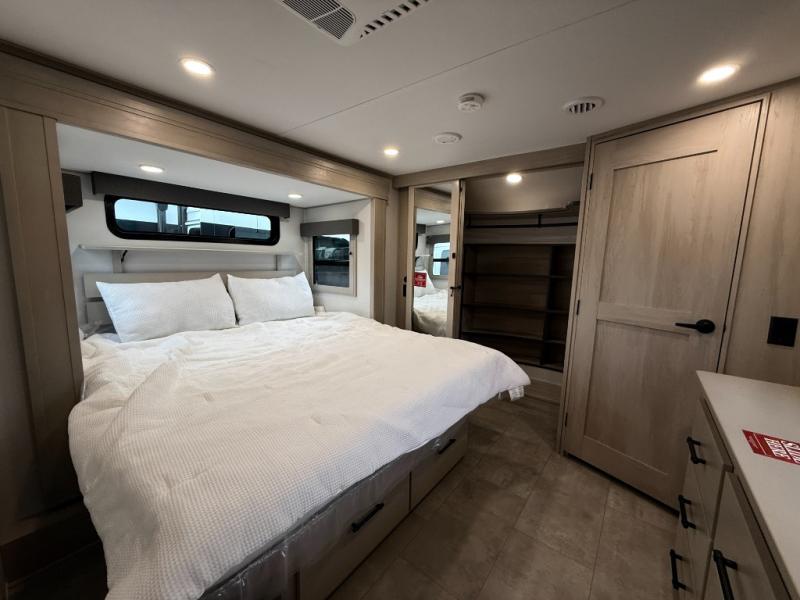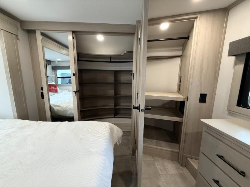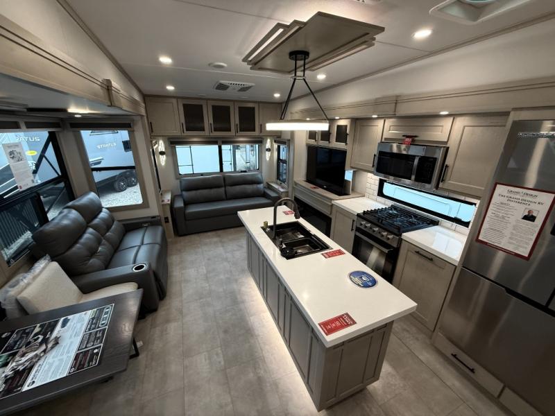 The Solitude 310GK combines residential luxury and long-haul durability for extended adventures. This fifth wheel features the upgraded Solar+ Package, three A/C units, and heavy-duty 8K axles with ABS drum brakes—giving you unmatched performance and comfort. The spacious interior includes a kitchen island, oversized pantry, and professional-grade appliances to make meal prep a pleasure, even on the road.