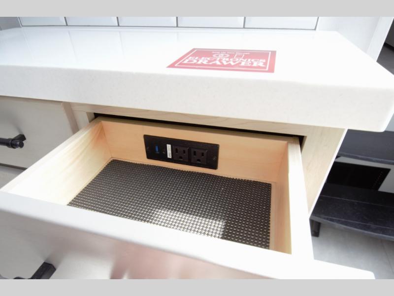 Relax outside under two large power awnings and enjoy the option of a pull out outdoor kitchen for meals in the open air. Plenty of storage and convenience for life on the road.