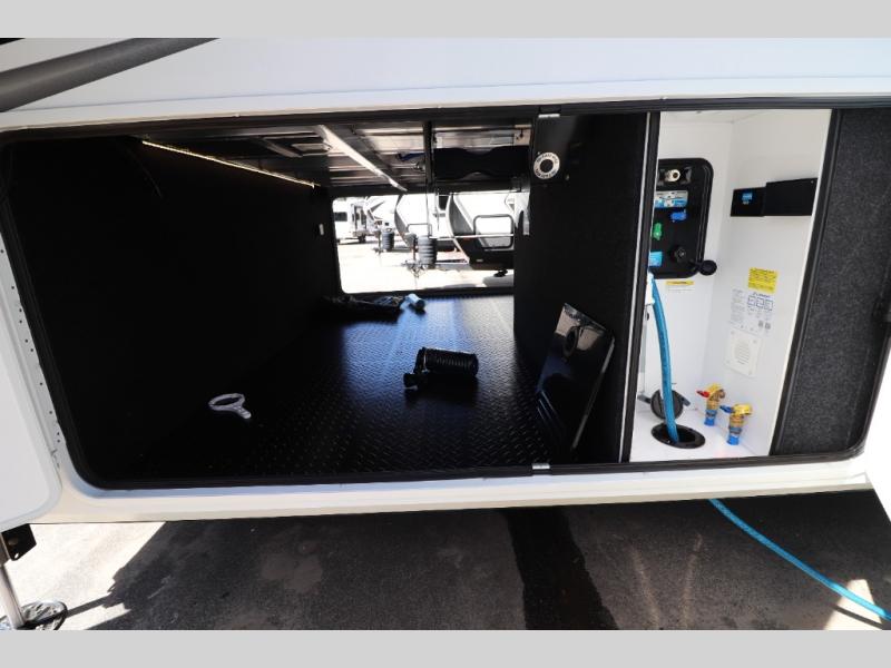 Entertainment System: Stay connected and entertained with an LED Smart TV in the living area, a Rockford Fosgate stereo system with HDMI and app controls, and exterior speakers for outdoor enjoyment.