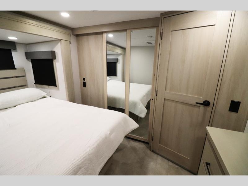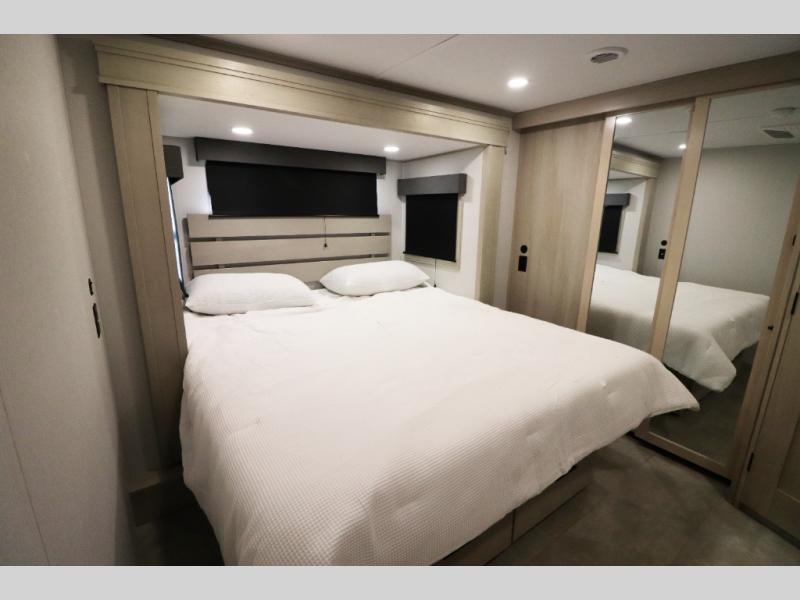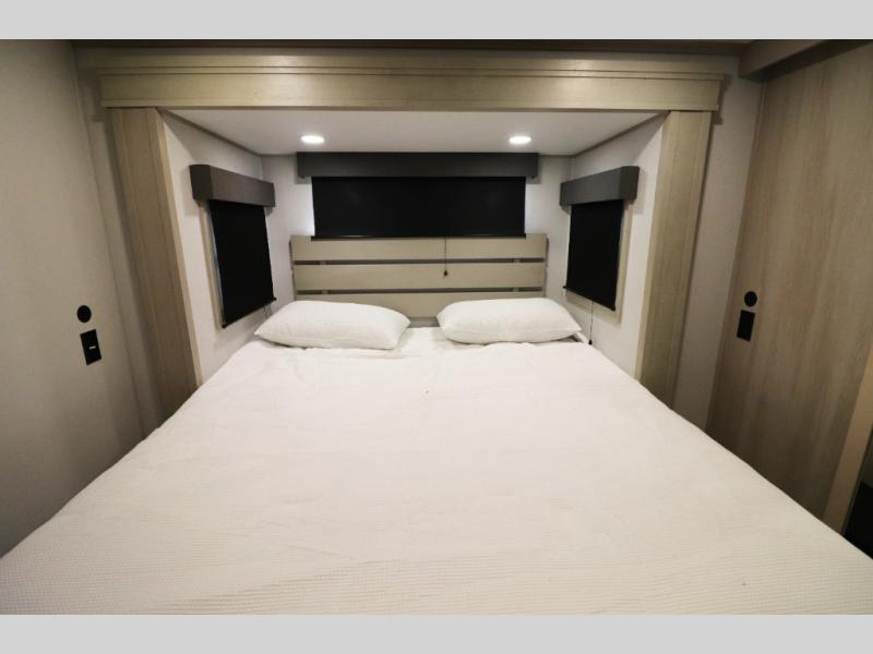 Comfortable Sleeping Arrangements: The master bedroom boasts a queen bed slide-out (king bed optional), under-bed storage, bedside 110-volt outlets, and USB ports, ensuring a restful night's sleep.