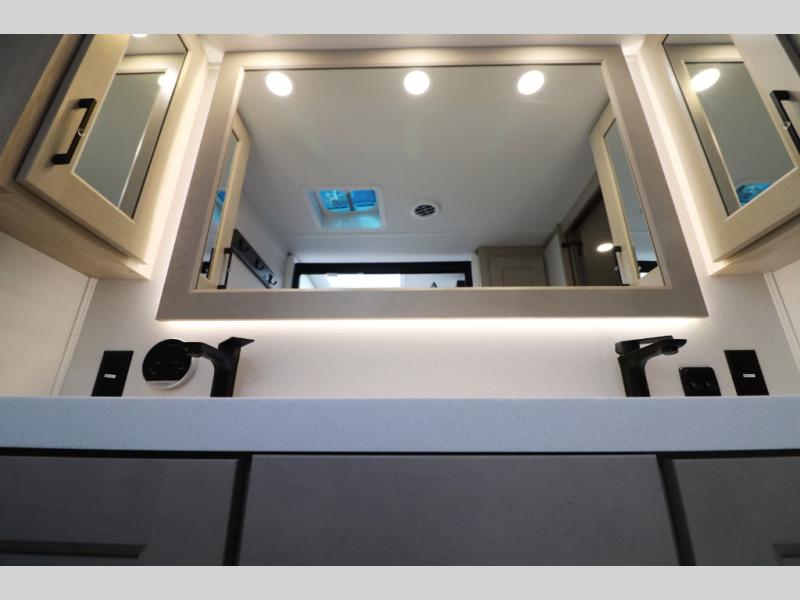 Durable Construction: Built with high-gloss gel coat exterior sidewalls, frameless tinted windows, and a painted gel coat fiberglass front cap, ensuring both style and durability.