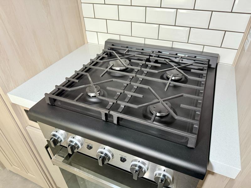 Each Solitude fifth wheel by Grand Design features a 101" wide-body construction, heavy duty 8,000 lb. axles, frameless tinted windows, and high-gloss gel coat sidewalls. You can camp year around thanks to the Weather-Tek Package that includes a 35K BTU high-capacity furnace, an all-in-one enclosed and heated utility center, and a fully enclosed underbelly with heated tanks and storage. Inside, you'll love the premium roller shades, hardwood cabinet doors, solid surface countertops, plus residential finishes throughout to make you truly feel at home. Each model also includes a MORryde CRE3000 suspension system, self adjusting brakes, and a MORryde pin box that will provide smooth towing from home to campground. Affordable luxury is possible with the Solitude fifth wheels; choose yours today!