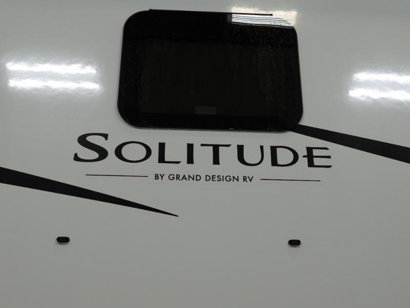 Each Solitude fifth wheel by Grand Design features a 101" wide-body construction, heavy duty 8,000 lb. axles, frameless tinted windows, and high-gloss gel coat sidewalls. You can camp year around thanks to the Weather-Tek Package that includes a 35K BTU high-capacity furnace, an all-in-one enclosed and heated utility center, and a fully enclosed underbelly with heated tanks and storage. Inside, you'll love the premium roller shades, hardwood cabinet doors, solid surface countertops, plus residential finishes throughout to make you truly feel at home. Each model also includes a MORryde CRE3000 suspension system, self adjusting brakes, and a MORryde pin box that will provide smooth towing from home to campground. Affordable luxury is possible with the Solitude fifth wheels; choose yours today!