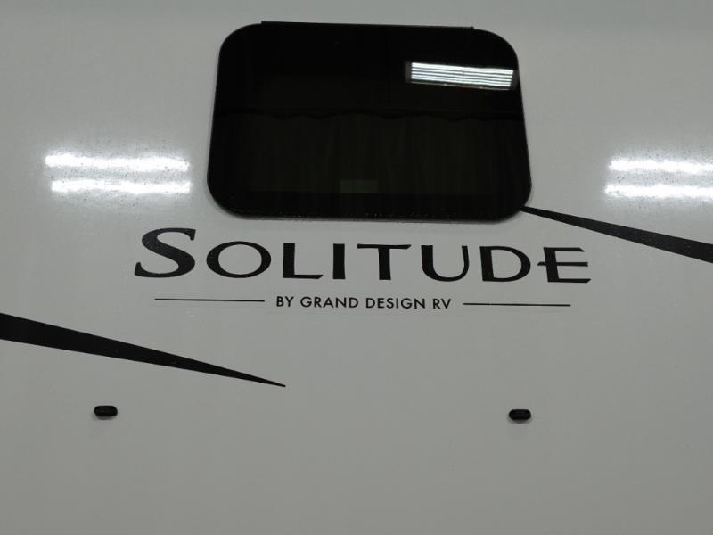 Each Solitude fifth wheel by Grand Design features a 101" wide-body construction, heavy duty 8,000 lb. axles, frameless tinted windows, and high-gloss gel coat sidewalls. You can camp year around thanks to the Weather-Tek Package that includes a 35K BTU high-capacity furnace, an all-in-one enclosed and heated utility center, and a fully enclosed underbelly with heated tanks and storage. Inside, you'll love the premium roller shades, hardwood cabinet doors, solid surface countertops, plus residential finishes throughout to make you truly feel at home. Each model also includes a MORryde CRE3000 suspension system, self adjusting brakes, and a MORryde pin box that will provide smooth towing from home to campground. Affordable luxury is possible with the Solitude fifth wheels; choose yours today!