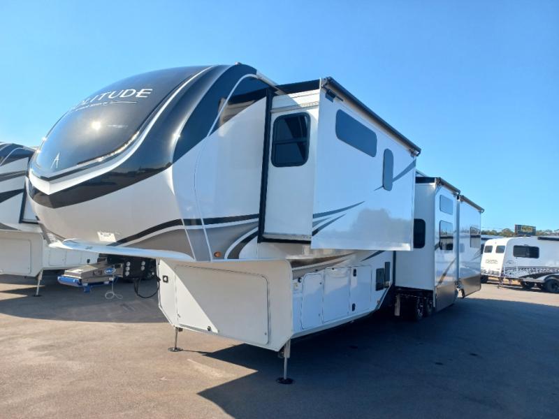 Each Solitude fifth wheel by Grand Design features a 101" wide-body construction, heavy duty 8,000 lb. axles, frameless tinted windows, and high-gloss gel coat sidewalls. You can camp year around thanks to the Weather-Tek Package that includes a 35K BTU high-capacity furnace, an all-in-one enclosed and heated utility center, and a fully enclosed underbelly with heated tanks and storage. Inside, you'll love the premium roller shades, hardwood cabinet doors, solid surface countertops, plus residential finishes throughout to make you truly feel at home. Each model also includes a MORryde CRE3000 suspension system, self adjusting brakes, and a MORryde pin box that will provide smooth towing from home to campground. Affordable luxury is possible with the Solitude fifth wheels; choose yours today!