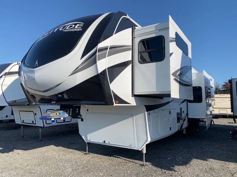 Each Solitude fifth wheel by Grand Design features a 101" wide-body construction, heavy duty 8,000 lb. axles, frameless tinted windows, and high-gloss gel coat sidewalls. You can camp year around thanks to the Weather-Tek Package that includes a 35K BTU high-capacity furnace, an all-in-one enclosed and heated utility center, and a fully enclosed underbelly with heated tanks and storage. Inside, you'll love the premium roller shades, hardwood cabinet doors, solid surface countertops, plus residential finishes throughout to make you truly feel at home. Each model also includes a MORryde CRE3000 suspension system, self adjusting brakes, and a MORryde pin box that will provide smooth towing from home to campground. Affordable luxury is possible with the Solitude fifth wheels; choose yours today!