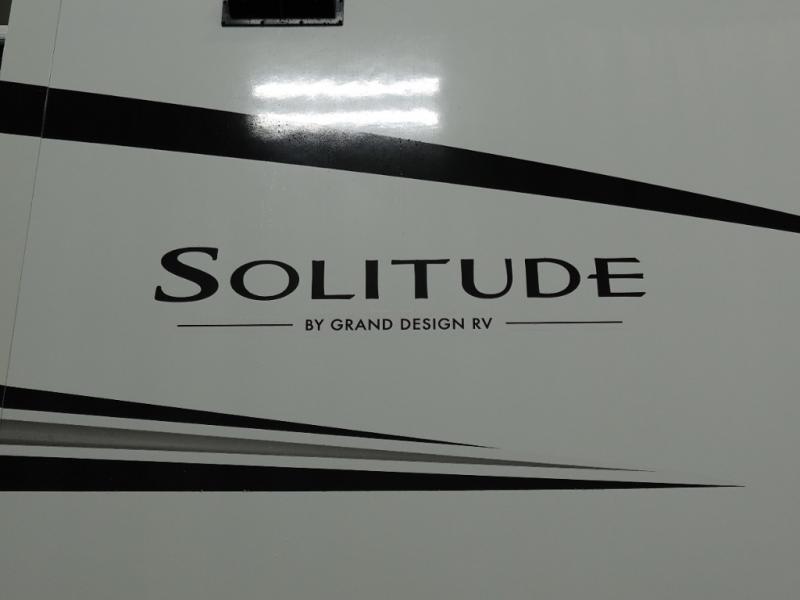 Each Solitude fifth wheel by Grand Design features a 101" wide-body construction, heavy duty 8,000 lb. axles, frameless tinted windows, and high-gloss gel coat sidewalls. You can camp year around thanks to the Weather-Tek Package that includes a 35K BTU high-capacity furnace, an all-in-one enclosed and heated utility center, and a fully enclosed underbelly with heated tanks and storage. Inside, you'll love the premium roller shades, hardwood cabinet doors, solid surface countertops, plus residential finishes throughout to make you truly feel at home. Each model also includes a MORryde CRE3000 suspension system, self adjusting brakes, and a MORryde pin box that will provide smooth towing from home to campground. Affordable luxury is possible with the Solitude fifth wheels; choose yours today!