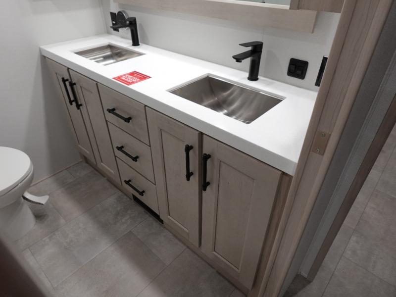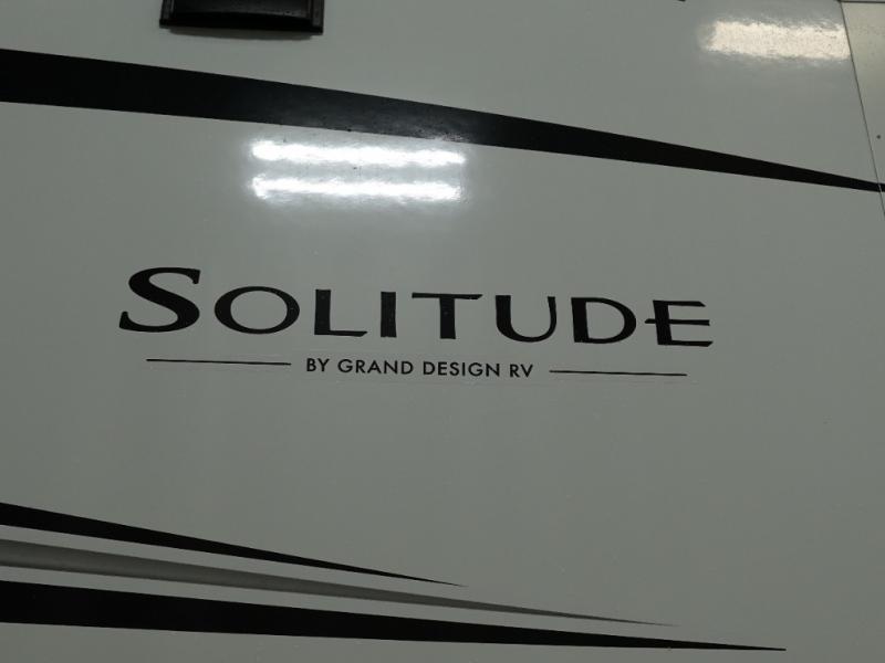 Each Solitude fifth wheel by Grand Design features a 101" wide-body construction, heavy duty 8,000 lb. axles, frameless tinted windows, and high-gloss gel coat sidewalls. You can camp year around thanks to the Weather-Tek Package that includes a 35K BTU high-capacity furnace, an all-in-one enclosed and heated utility center, and a fully enclosed underbelly with heated tanks and storage. Inside, you'll love the premium roller shades, hardwood cabinet doors, solid surface countertops, plus residential finishes throughout to make you truly feel at home. Each model also includes a MORryde CRE3000 suspension system, self adjusting brakes, and a MORryde pin box that will provide smooth towing from home to campground. Affordable luxury is possible with the Solitude fifth wheels; choose yours today!