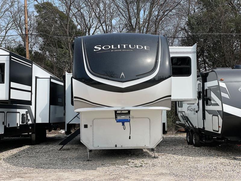 Each Solitude fifth wheel by Grand Design features a 101" wide-body construction, heavy duty 8,000 lb. axles, frameless tinted windows, and high-gloss gel coat sidewalls. You can camp year around thanks to the Weather-Tek Package that includes a 35K BTU high-capacity furnace, an all-in-one enclosed and heated utility center, and a fully enclosed underbelly with heated tanks and storage. Inside, you'll love the premium roller shades, hardwood cabinet doors, solid surface countertops, plus residential finishes throughout to make you truly feel at home. Each model also includes a MORryde CRE3000 suspension system, self adjusting brakes, and a MORryde pin box that will provide smooth towing from home to campground. Affordable luxury is possible with the Solitude fifth wheels; choose yours today!
