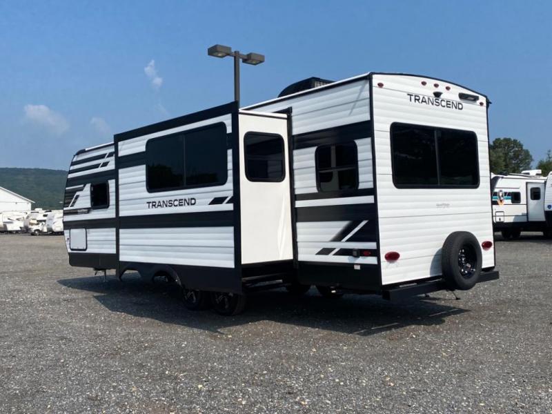 With any Transcend travel trailer by Grand Design, you will enjoy upscale appointments and convenient amenities to make each camping experience one to remember! The Quad Seal technology, residential insulated walls, plus heated and enclosed underbelly with suspended tanks make these units solid and durable. There is a black automotive glass door outside, along with a Safe-T-Rail assist on the main entry door, backup camera prep, and a universal docking station. JBL interior and exterior speakers plus a JBL head unit will let you listen to your favorite tunes as you visit under the power awning with LED strip lights. Inside, you'll enjoy multiple outlets to keep your gadgets charged, thermoformed and seamless countertops, and a 6' 6" interior height so you won't feel closed in. The Solar Prep Package will allow you to enjoy off-grid capabilities with a 200W solar panel, which is wired for up to 600W, a 30 AMP Bluetooth solar controller, a 2000W inverter prep, and more!