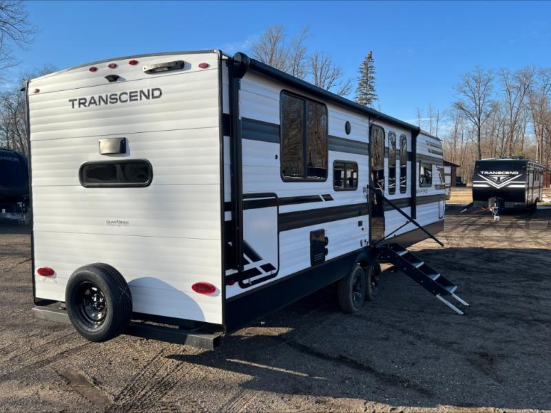 With any Transcend travel trailer by Grand Design, you will enjoy upscale appointments and convenient amenities to make each camping experience one to remember! The Quad Seal technology, residential insulated walls, plus heated and enclosed underbelly with suspended tanks make these units solid and durable. There is a black automotive glass door outside, along with a Safe-T-Rail assist on the main entry door, backup camera prep, and a universal docking station. JBL interior and exterior speakers plus a JBL head unit will let you listen to your favorite tunes as you visit under the power awning with LED strip lights. Inside, you'll enjoy multiple outlets to keep your gadgets charged, thermoformed and seamless countertops, and a 6' 6" interior height so you won't feel closed in. The Solar Prep Package will allow you to enjoy off-grid capabilities with a 200W solar panel, which is wired for up to 600W, a 30 AMP Bluetooth solar controller, a 2000W inverter prep, and more!