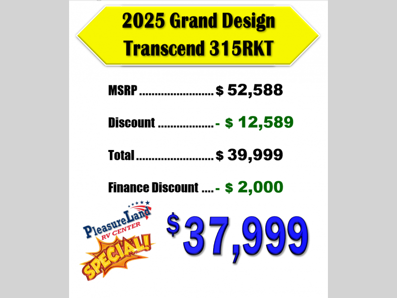 New 2025 Grand Design Transcend 315RKT Travel Trailer