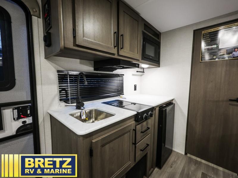 With any Transcend One travel trailer by Grand Design, you will enjoy lightweight towing thanks to their single-axle. There are many interior comforts to make camping easier than ever, such as recessed lighting, residential countertops, and a 6' 6" interior height. Each model is constructed with a heated and enclosed underbelly with suspended tanks, a moisture barrier floor enclosure, and Thermofoil over the roof and front cap for added protection. And a JBL sound system will let you listen to tunes as you visit under the power awning with a Fusion light!