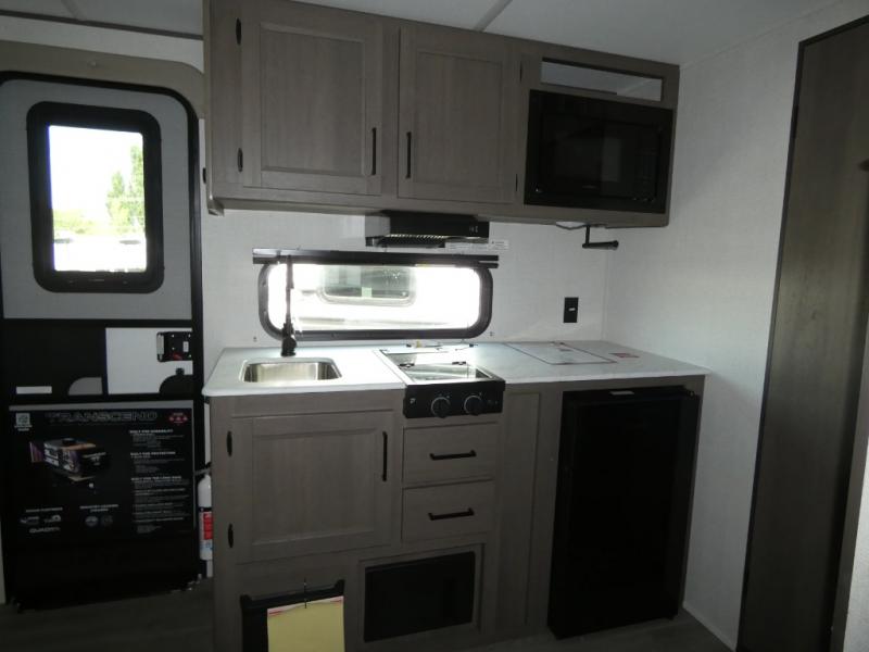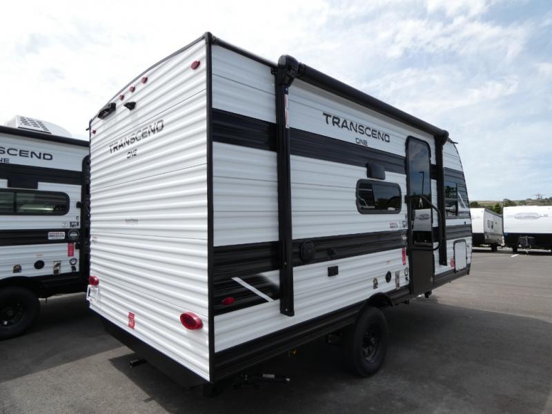 With any Transcend One travel trailer by Grand Design, you will enjoy lightweight towing thanks to their single-axle. There are many interior comforts to make camping easier than ever, such as recessed lighting, residential countertops, and a 6' 6" interior height. Each model is constructed with a heated and enclosed underbelly with suspended tanks, a moisture barrier floor enclosure, and Thermofoil over the roof and front cap for added protection. And a JBL sound system will let you listen to tunes as you visit under the power awning with a Fusion light!