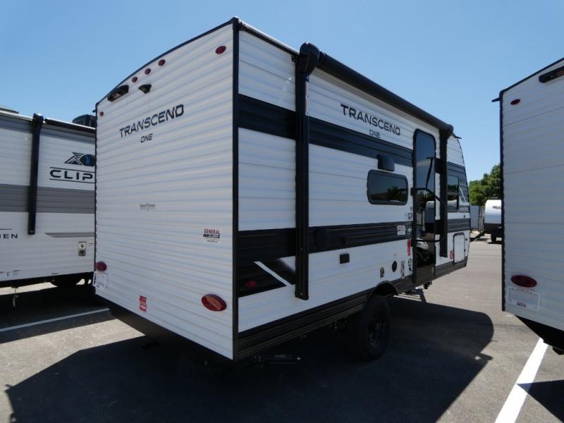 With any Transcend One travel trailer by Grand Design, you will enjoy lightweight towing thanks to their single-axle. There are many interior comforts to make camping easier than ever, such as recessed lighting, residential countertops, and a 6' 6" interior height. Each model is constructed with a heated and enclosed underbelly with suspended tanks, a moisture barrier floor enclosure, and Thermofoil over the roof and front cap for added protection. And a JBL sound system will let you listen to tunes as you visit under the power awning with a Fusion light!