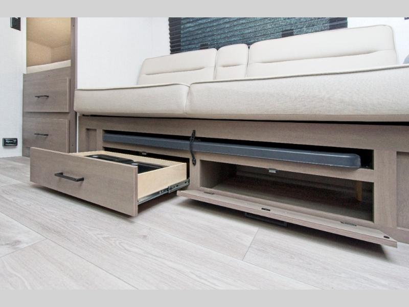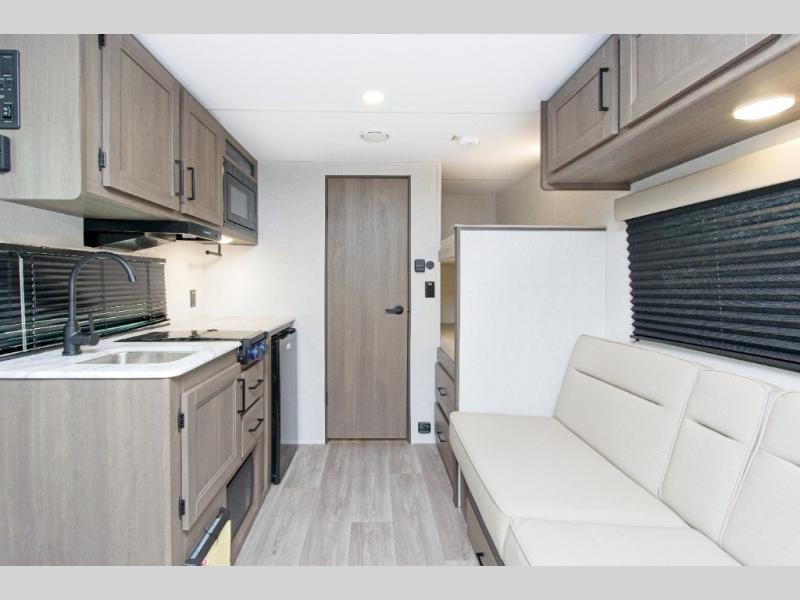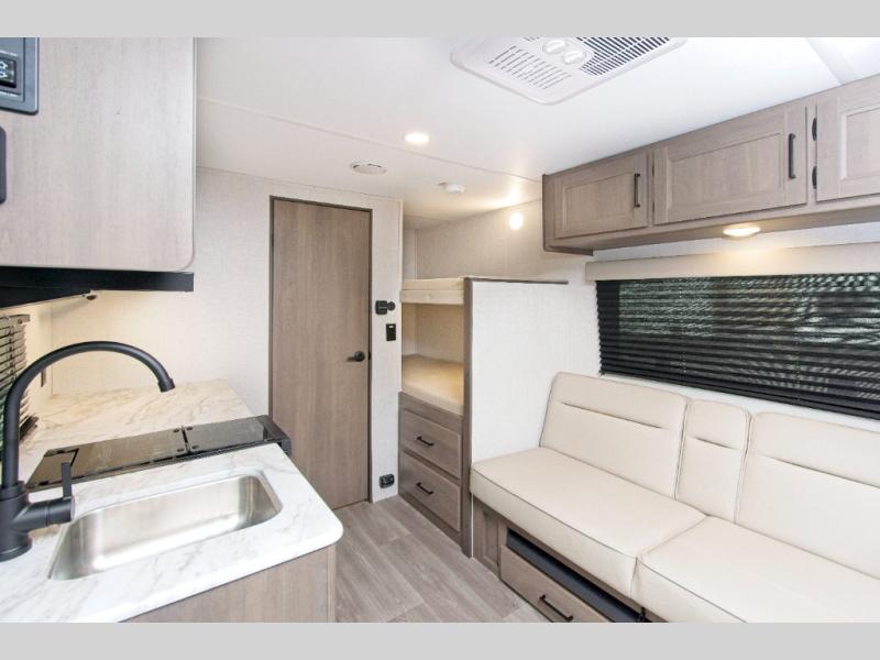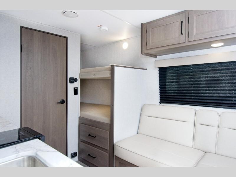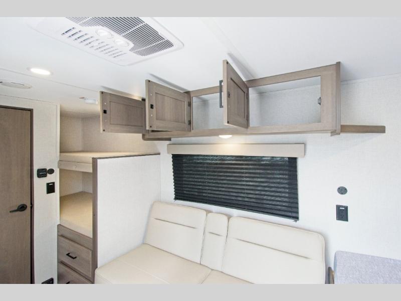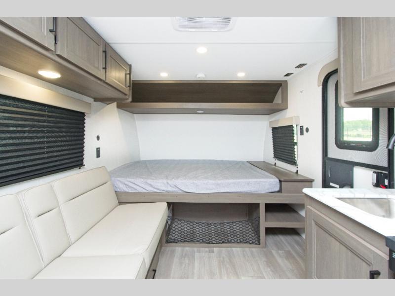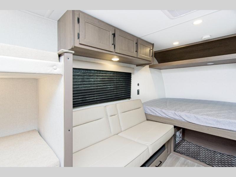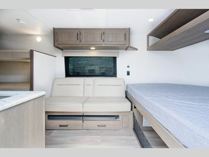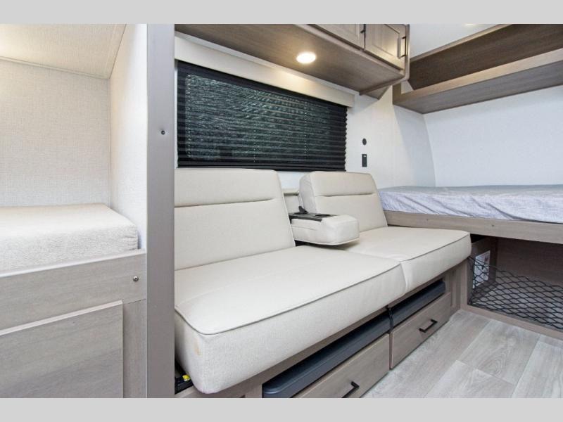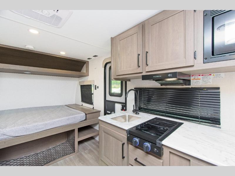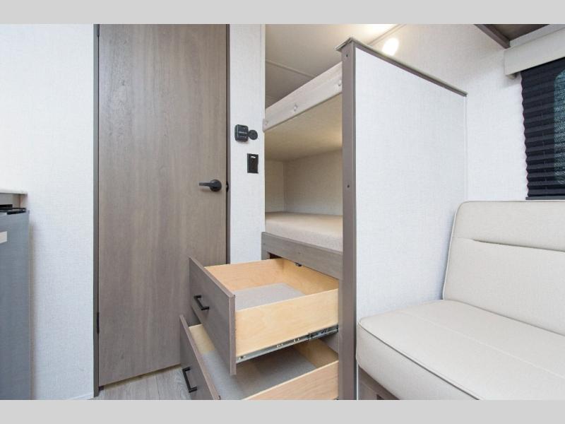 The Grand Design Transcend One 151BH offers family-friendly comfort with built-in bunk beds and unbeatable storage thanks to its unobstructed pass-thru compartment.