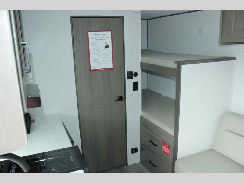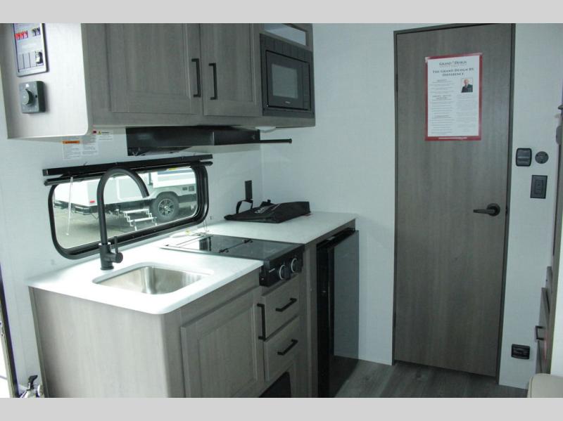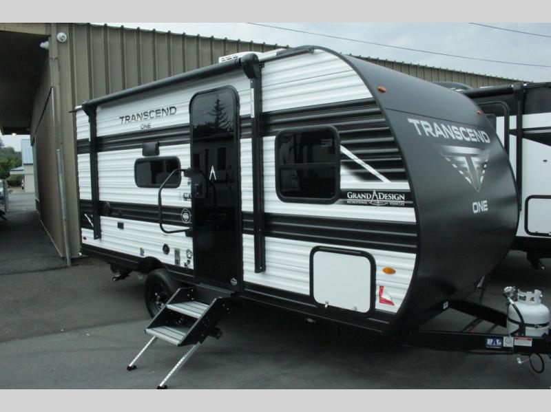 With any Transcend One travel trailer by Grand Design, you will enjoy lightweight towing thanks to their single-axle. There are many interior comforts to make camping easier than ever, such as recessed lighting, residential countertops, and a 6' 6" interior height. Each model is constructed with a heated and enclosed underbelly with suspended tanks, a moisture barrier floor enclosure, and Thermofoil over the roof and front cap for added protection. And a JBL sound system will let you listen to tunes as you visit under the power awning with a Fusion light!