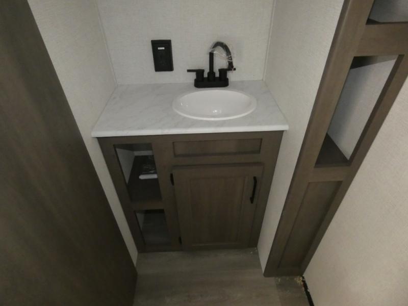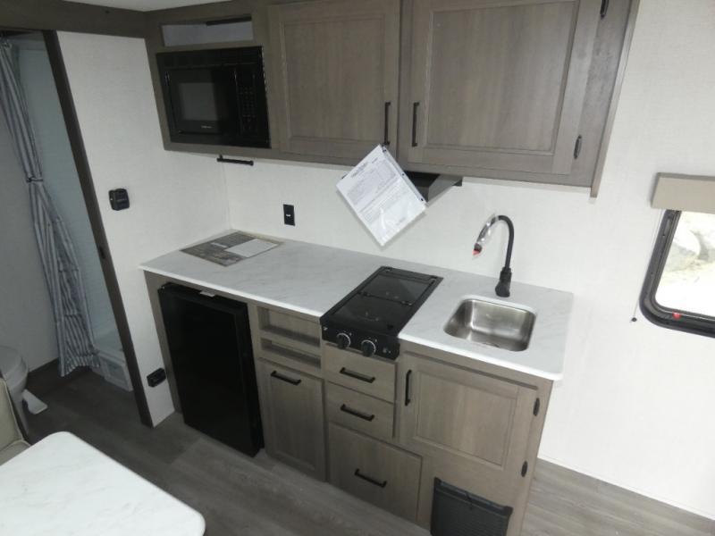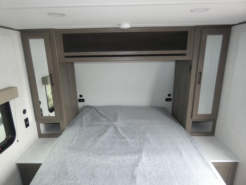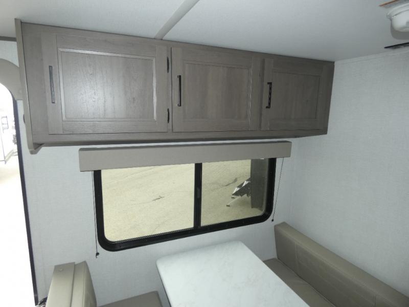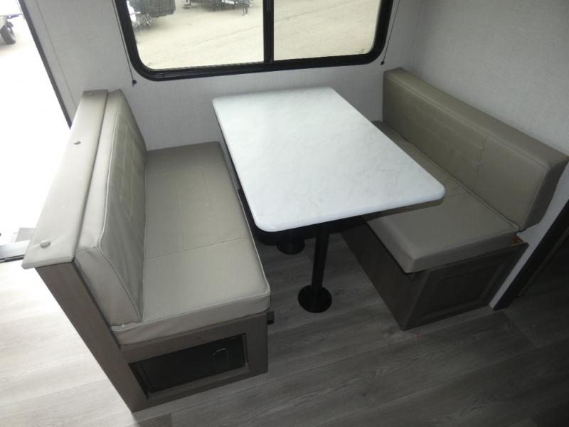 This is the perfect couple's trailer with versatile seating and sleeping space! You'll find a queen-size Murphy bed up front with storage space beside and above plus a full rear bath for added privacy. Once you've made lunch in the full kitchen, you can dine at the booth dinette, or take your plate outdoors to sit under the 10' power awning. You'll also find an unobstructed pass-thru storage outside that will be perfect for fishing poles, lawn chairs, tools and more!