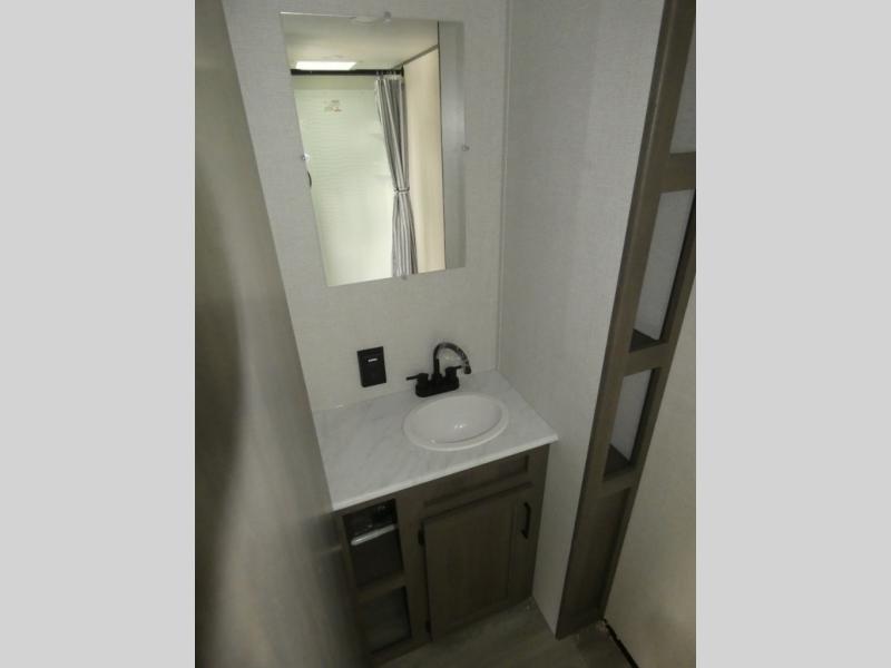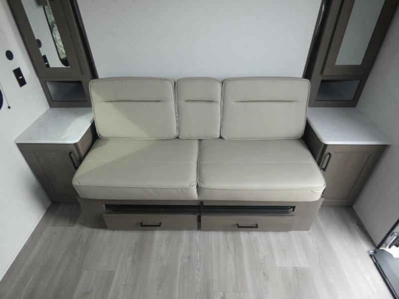 With any Transcend One travel trailer by Grand Design, you will enjoy lightweight towing thanks to their single-axle. There are many interior comforts to make camping easier than ever, such as recessed lighting, residential countertops, and a 6' 6" interior height. Each model is constructed with a heated and enclosed underbelly with suspended tanks, a moisture barrier floor enclosure, and Thermofoil over the roof and front cap for added protection. And a JBL sound system will let you listen to tunes as you visit under the power awning with a Fusion light!