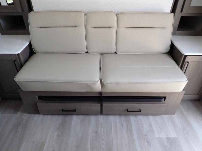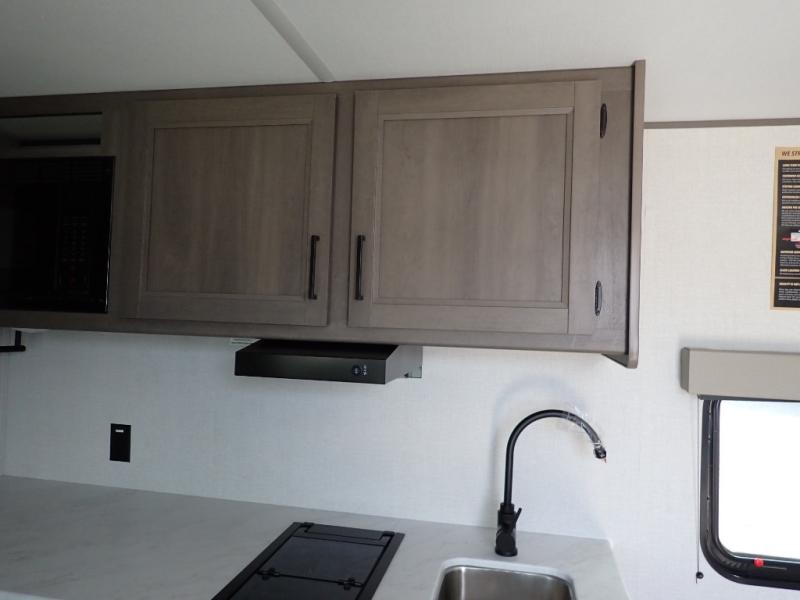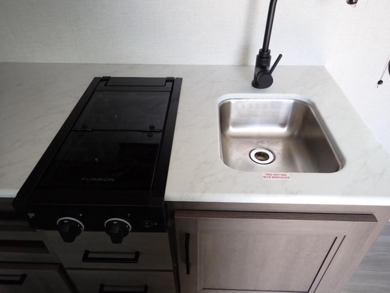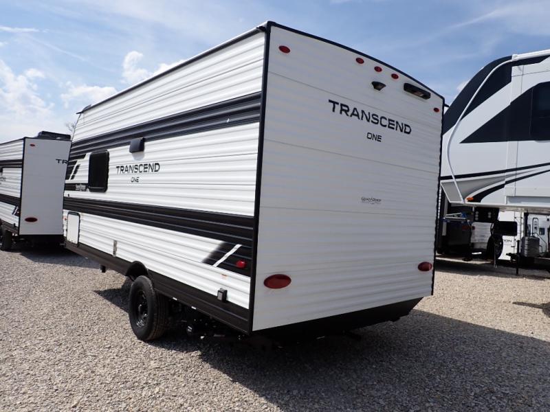 With any Transcend One travel trailer by Grand Design, you will enjoy lightweight towing thanks to their single-axle. There are many interior comforts to make camping easier than ever, such as a deep seated stainless steel sink and high rise faucet with a pull-down sprayer, solid wood drawer fronts, and a 6' 6" interior height. Each model is constructed with a heated and enclosed underbelly with suspended tanks, a moisture barrier floor enclosure, and Thermofoil over the roof and front cap for added protection. A JBL head unit and exterior speaker will let you listen to tunes as you visit under the power awning with an LED light. If you plan to go off the beaten path, take a look at the optional Solar Package that comes with 600W solar prep, an 8 cu. ft. 12V refrigerator, solar disconnect, and more!