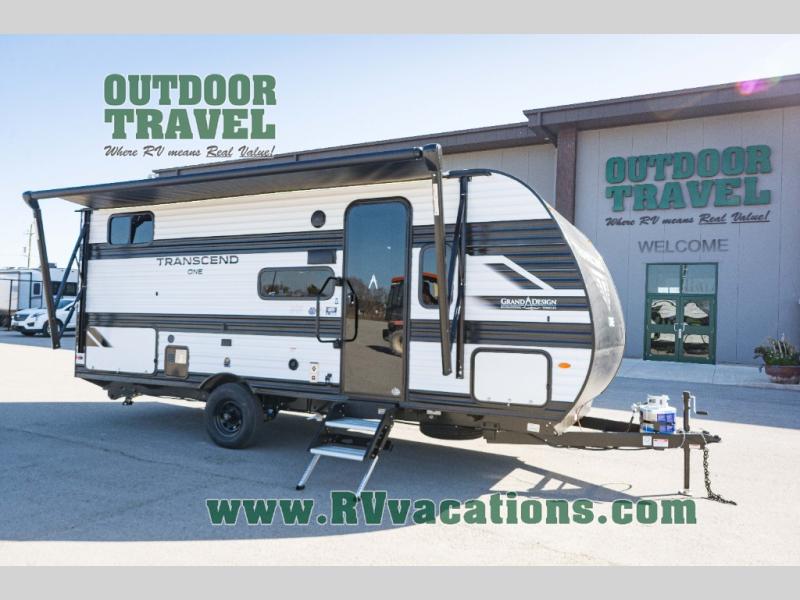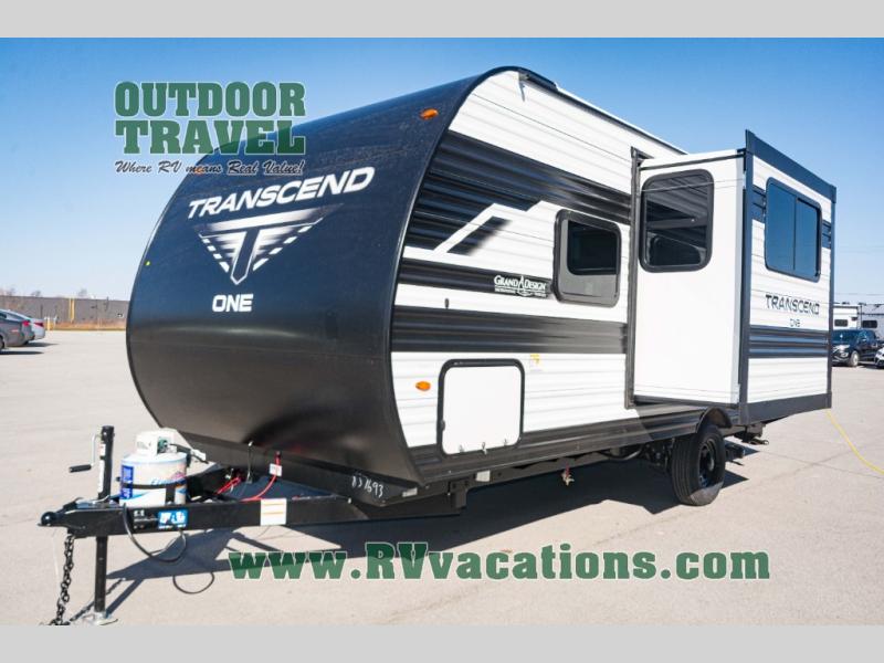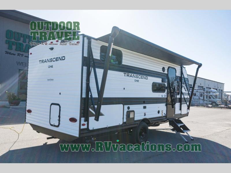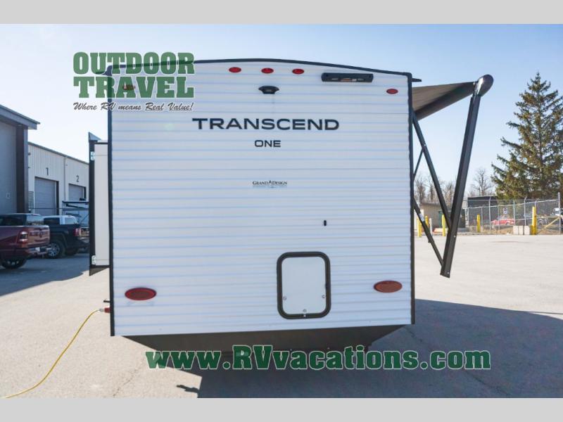 With any Transcend One travel trailer by Grand Design, you will enjoy lightweight towing thanks to their single-axle. There are many interior comforts to make camping easier than ever, such as recessed lighting, residential countertops, and a 6' 6" interior height. Each model is constructed with a heated and enclosed underbelly with suspended tanks, a moisture barrier floor enclosure, and Thermofoil over the roof and front cap for added protection. And a JBL sound system will let you listen to tunes as you visit under the power awning with a Fusion light!
