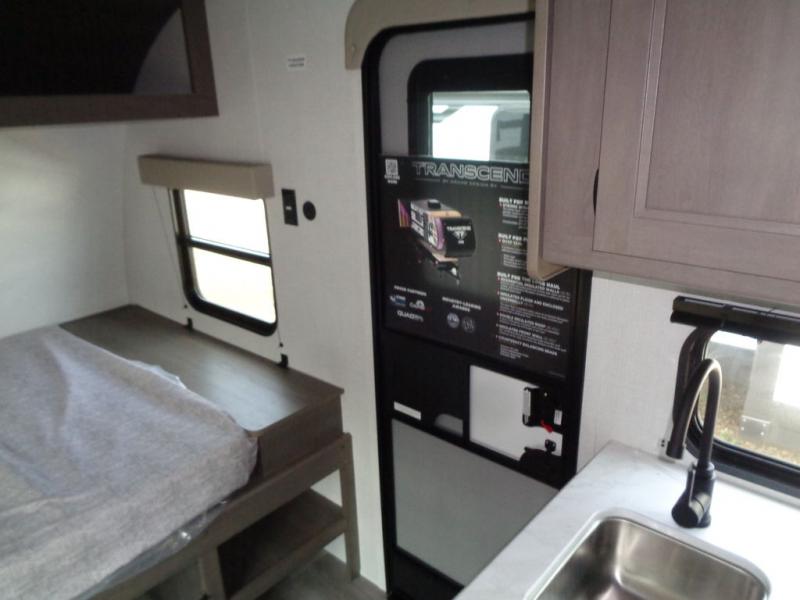 With any Transcend One travel trailer by Grand Design, you will enjoy lightweight towing thanks to their single-axle. There are many interior comforts to make camping easier than ever, such as recessed lighting, residential countertops, and a 6' 6" interior height. Each model is constructed with a heated and enclosed underbelly with suspended tanks, a moisture barrier floor enclosure, and Thermofoil over the roof and front cap for added protection. And a JBL sound system will let you listen to tunes as you visit under the power awning with a Fusion light!