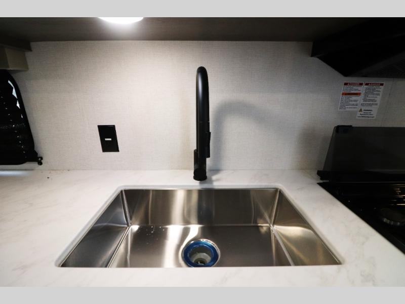 The 2025 Transcend Xplor 20MKX stands out with its matte black front metal, sleek aluminum sidewalls, and rugged quad-seal protection—engineered to resist water intrusion and road debris. Its Elevated Travel Trailer chassis offers superior ground clearance and a smooth towing experience, while the black steel wheels, bold Xplor graphics, and friction-hinge entry door add both function and style. With pass-through storage and an outdoor LP quick connect, it's designed for camping convenience.