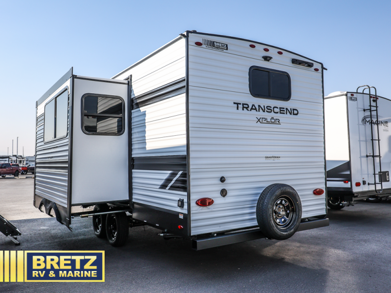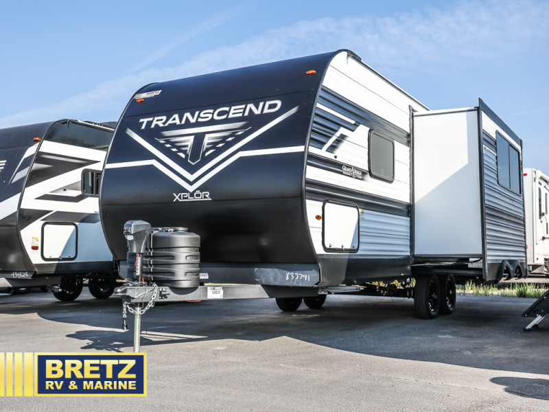 The customer-focused, quality-built Transcend Xplor travel trailers by Grand Design are your ticket to fun and adventure. You will appreciate the power tongue jack when it comes time to set up, as well as the all-in-one utility center and the detachable power cord with an LED light. These models include many outlets throughout, USB ports to charge your gadgets, and a JBL exterior speaker to listen to your favorite tunes. The interior of the Transcend Xplor will have you feeling right at home with upgraded residential furniture, residential countertops, residential cabinet doors, and the list goes on!