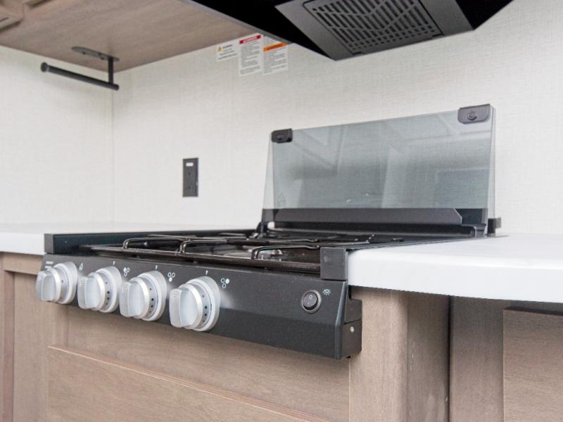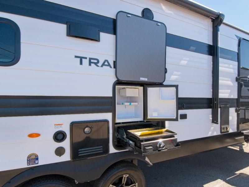 Experience ultimate comfort and convenience with the Grand Design Transcend 245RLT, featuring a spacious U-shaped dinette slide and an exterior griddle with a refrigerator for perfect outdoor cooking.