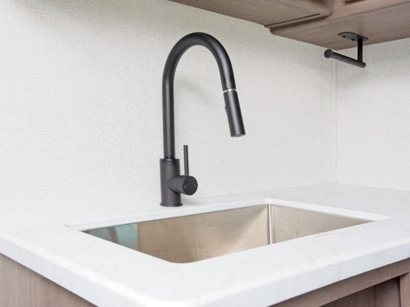 Upscale Appointments and Durable Construction: Grand Design's Transcend travel trailers boast Quad Seal technology, residential insulated walls, and a heated/enclosed underbelly with suspended tanks for durability. The exterior features a black automotive glass door, Safe-T-Rail assist, backup camera prep, and a universal docking station. JBL interior and exterior speakers, along with a JBL head unit, let you enjoy your favorite tunes under the power awning with LED strip lights. Inside, you'll find multiple outlets, thermoformed seamless countertops, and a 6' 6" interior height for a spacious feel. The Solar Prep Package includes a 200W solar panel, wired for up to 600W, a 30 AMP Bluetooth solar controller, and 2000W inverter prep for off-grid capabilities.