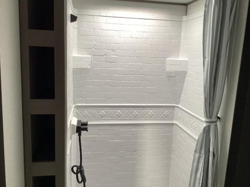 A 15' power awning with LED lighting provides shade and shelter for outdoor relaxation.